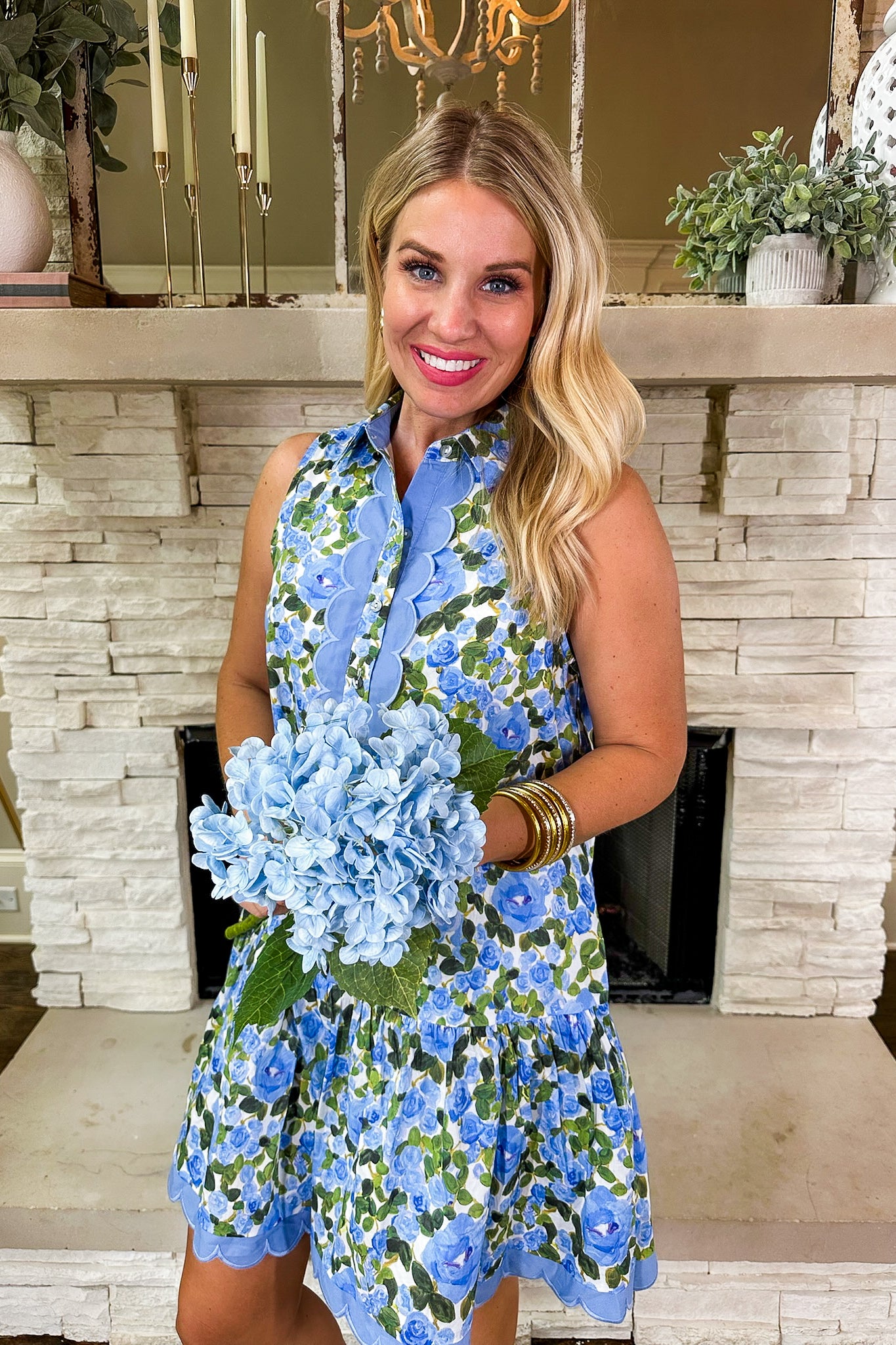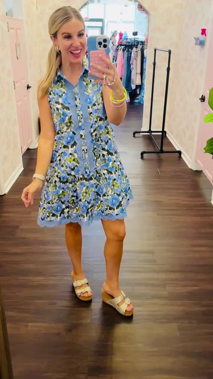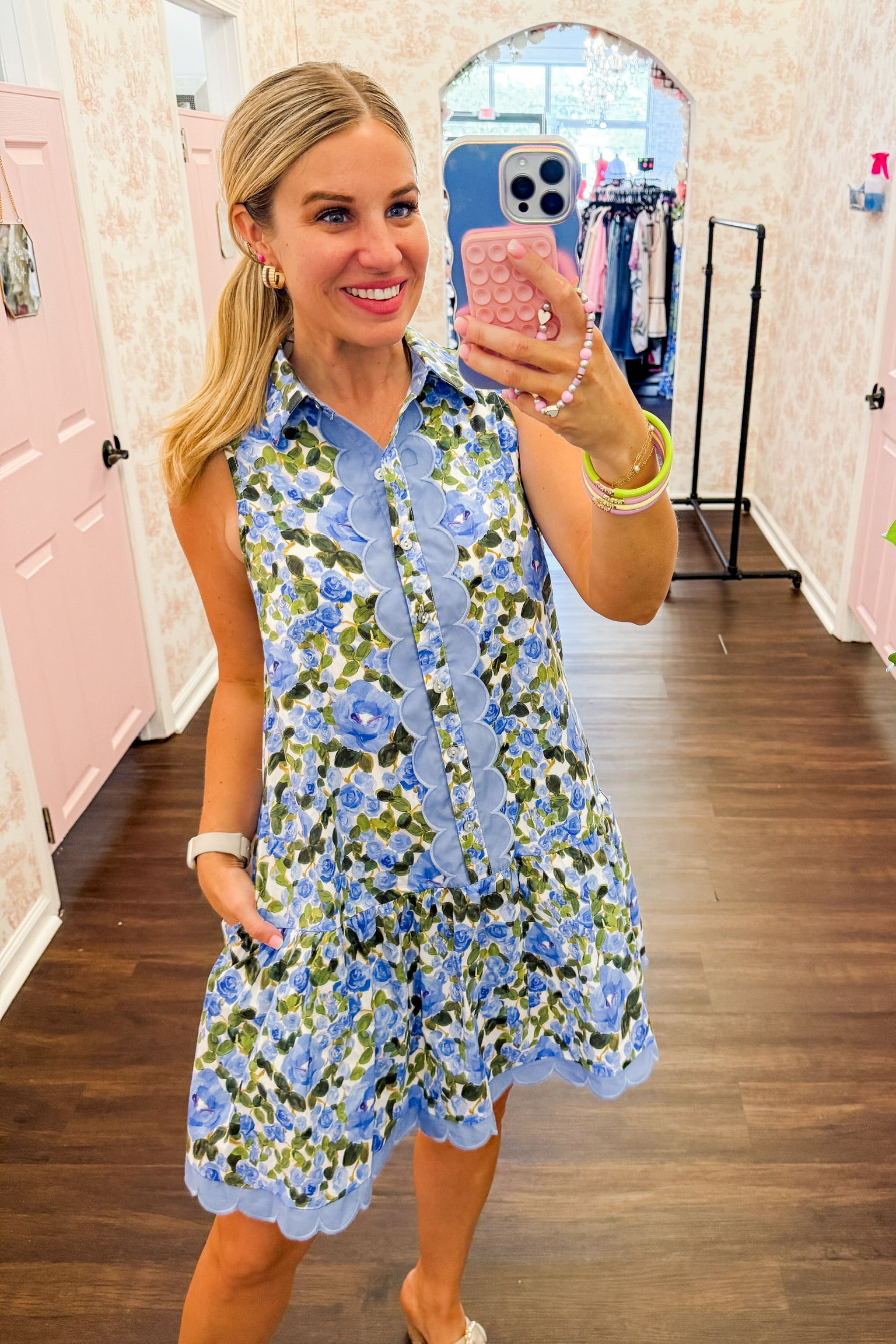 Nothing says summertime in the south like blue hydrangeas. This dress is a head turner - with the sweetest scallop detail trim. It also has pockets!