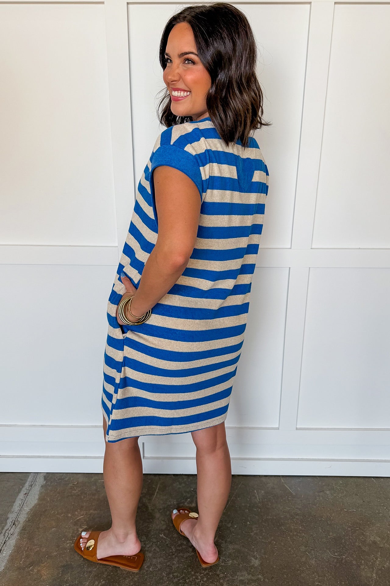 Hot Pink Deal - Classic Striped Terrycloth Dress in Blue