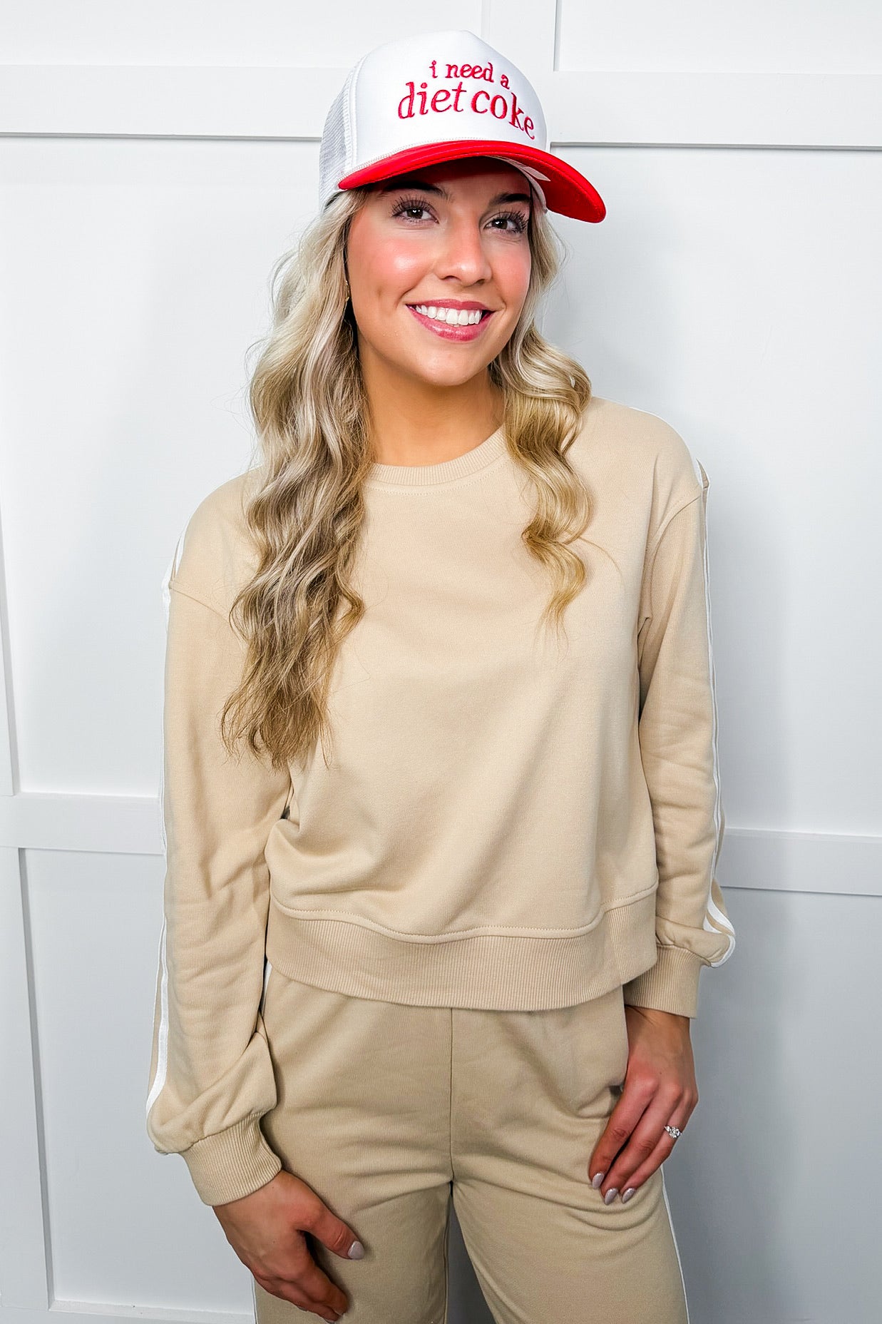 Turn heads in this oatmeal lounge set—made to keep you comfy and stylish. With wide-leg flowy pants and sporty side stripes, this outfit balances casual chic with effortless street flair. Perfect for travel days, errands, game-day looks, or a cute matching airport fit. Soft, stretchy, and designed to move with you—she’s giving cozy confidence in every step. Wear together for a statement look or mix & match for endless outfit combos.