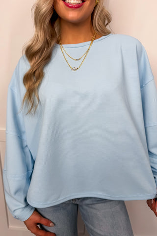 Essential Cowl Neck Lightweight Sweater Top in Light Blue