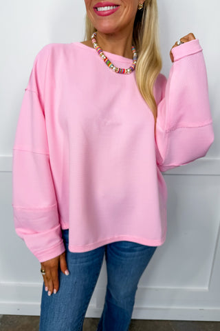 Essential Cowl Neck Lightweight Sweater Top in Light Pink