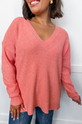 Reverse Pigmented Soft Rose V-Neck Lightweight Sweater