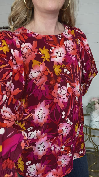 Step into the warmth of autumn with this Burgundy Floral Smocked Sleeve Top! Red hues take center stage in the delightful floral pattern, while the smocked sleeves and keyhole button back offer a snug and pretty fit. You'll be smocking up some compliments in no time!