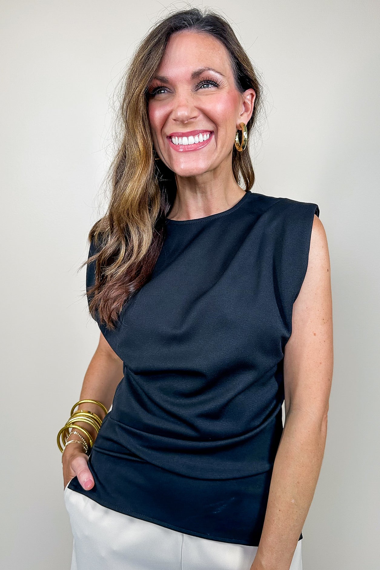 Turn heads in this black fitted blouse designed with a structured waistline that flatters every curve. Its sleeveless cut keeps you cool and chic for any occasion. Available in classic black too, it’s the playful twist your wardrobe has been waiting for!