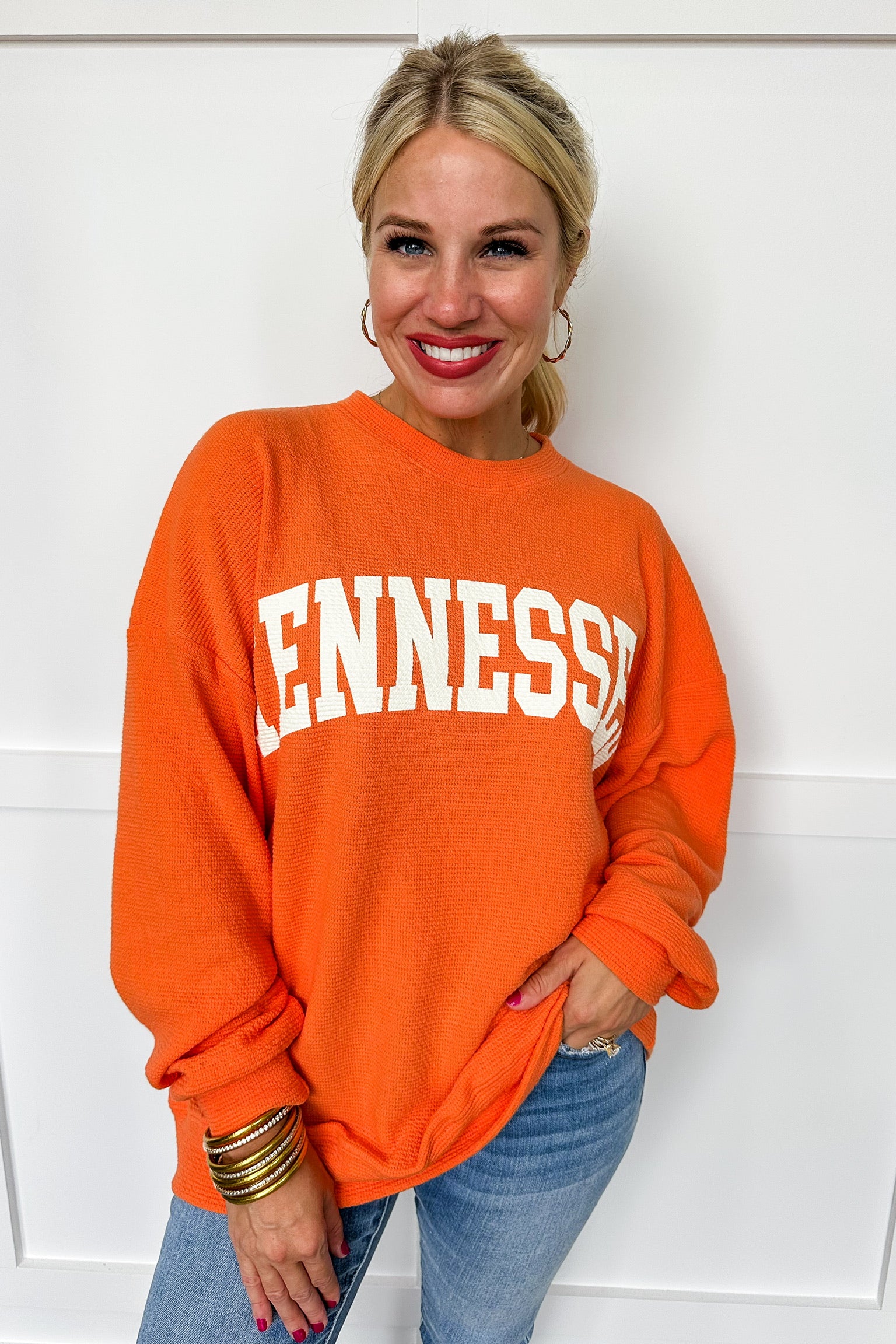 Get game-day ready in the Game Day Tennessee Lightweight Pullover Top! This crew neck, long sleeve must-have offers a breathable, lightweight feel that keeps you comfy through every cheer and chant. With its somewhat oversized, pullover fit, it’s perfect for layering or going solo while showing off your team spirit with playful ease.