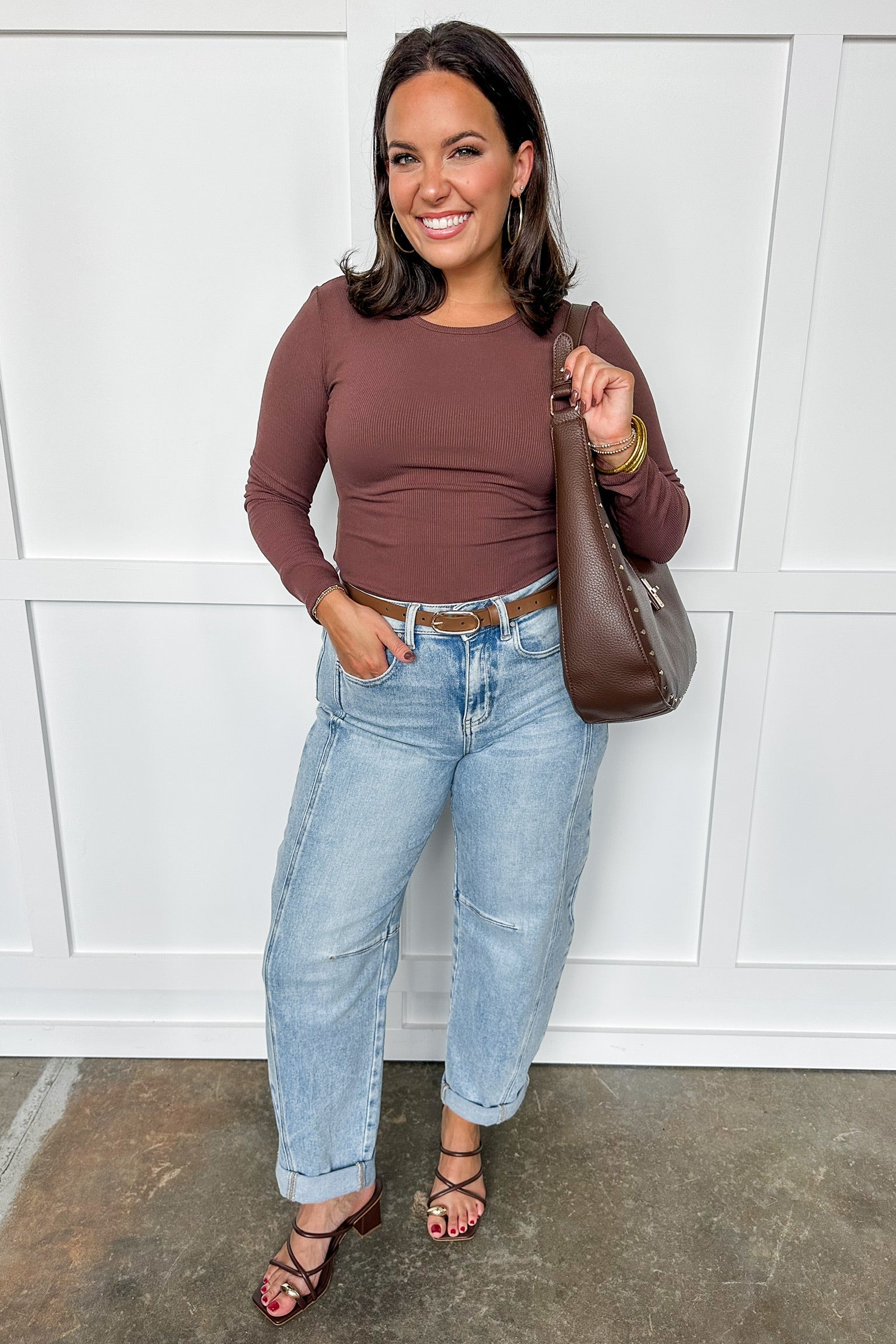 Stay cozy and stylish with this Classic Everyday Long Sleeve Top in Coffee. Its fitted design hugs your silhouette perfectly, making it a go-to piece for layering or wearing solo. Whether you're dressing up or keeping it casual, this versatile long sleeve adds a fun, effortless vibe to any outfit.