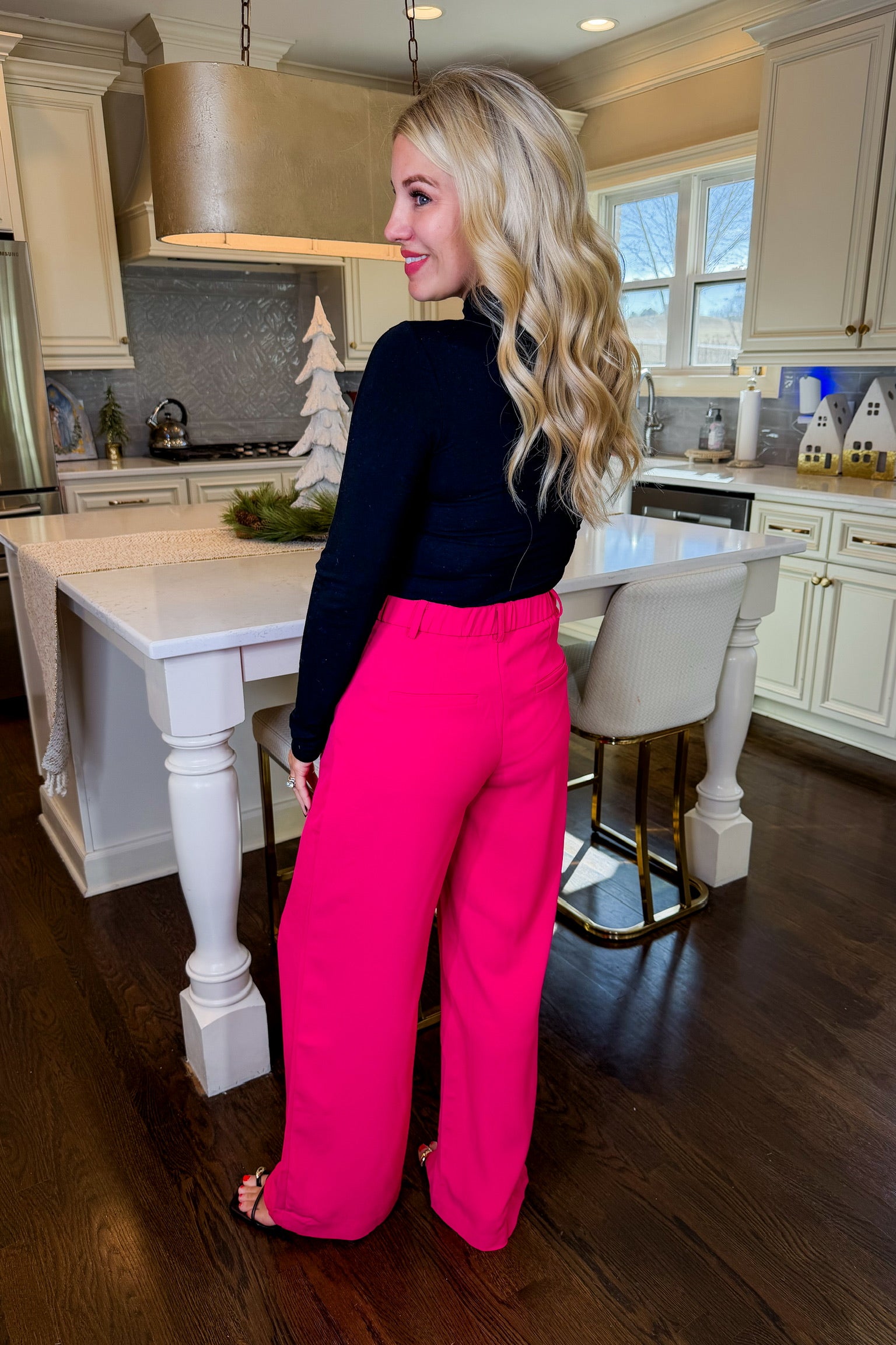 Meet the Power Pink Trousers — your new secret weapon for outfits that mean business and bring the charm. These wide-leg beauties feature a sleek high-rise waist and a fluid drape that moves with quiet confidence. Whether you're heading to the office, date night, or girls’ brunch, these trousers deliver that effortlessly polished look with a fun pop of vibrant color.