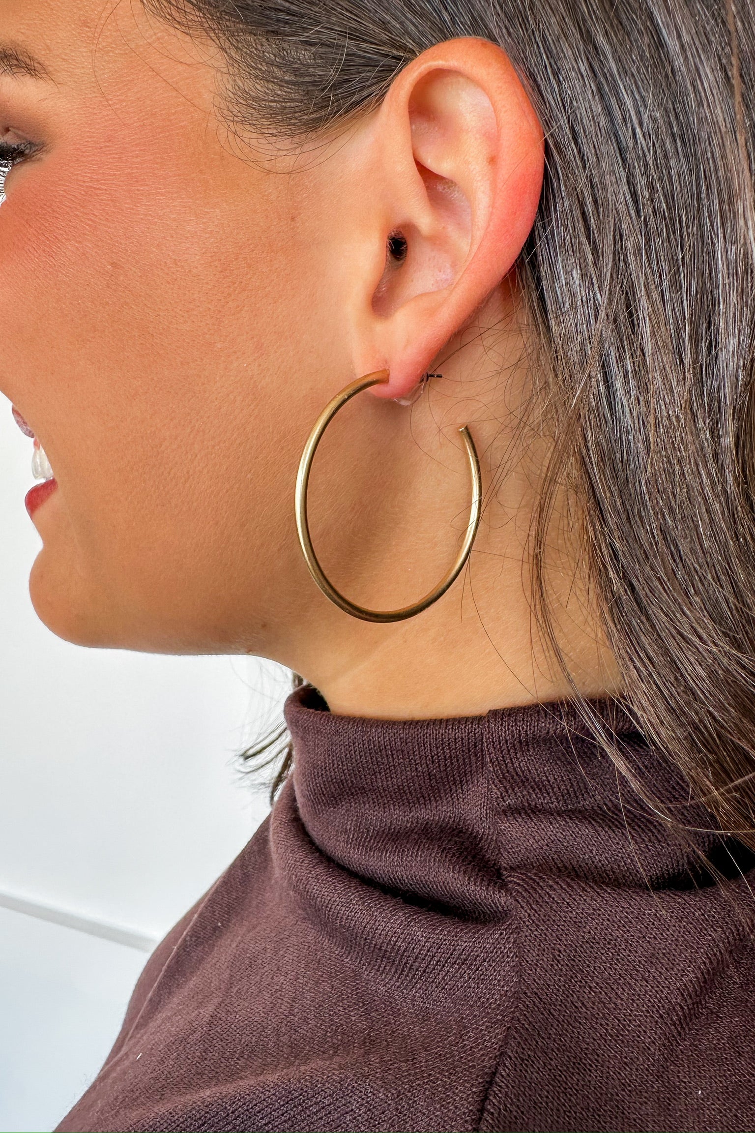 Add a touch of subtle sparkle with these Muted Gold Large Round Hoops. Their understated shine and generous size make them perfect for turning everyday looks into head-turning moments. Lightweight and easy to wear, these hoops bring effortless charm to your style with a playful twist.