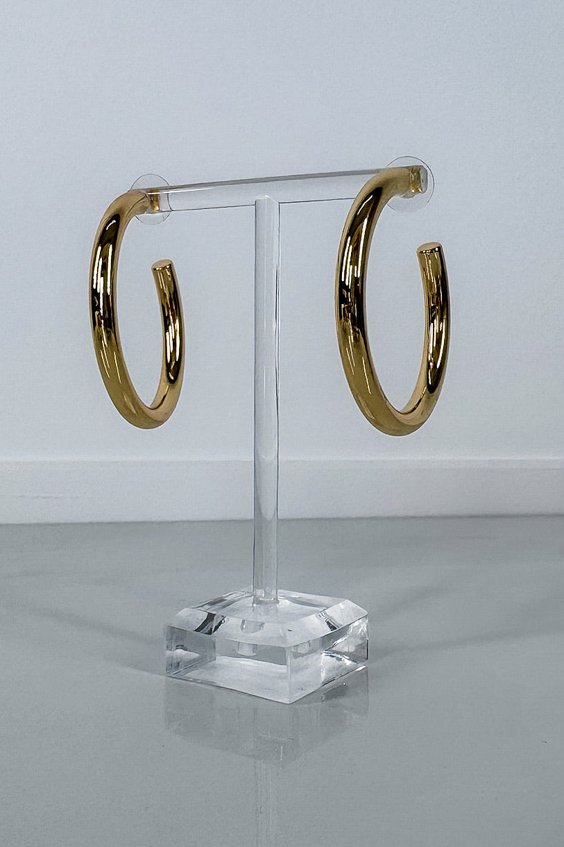 Add a bold twist to your look with these Thick Polished Gold Hoop Earrings. Their shiny finish catches the light beautifully, making every turn a statement. Perfect for adding a pop of glam to casual days or jazzing up your party outfit—wear them and let your ears do the talking!