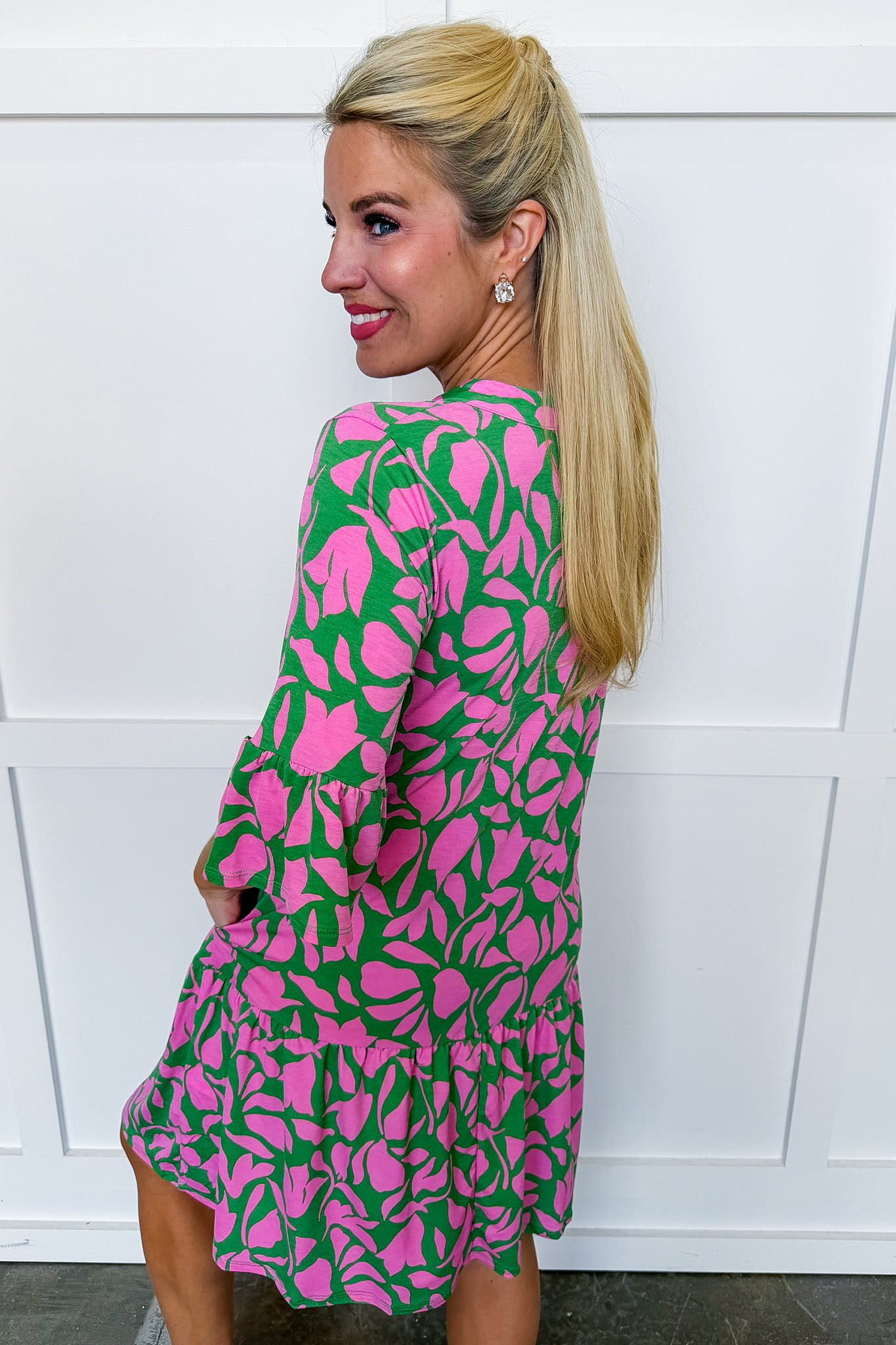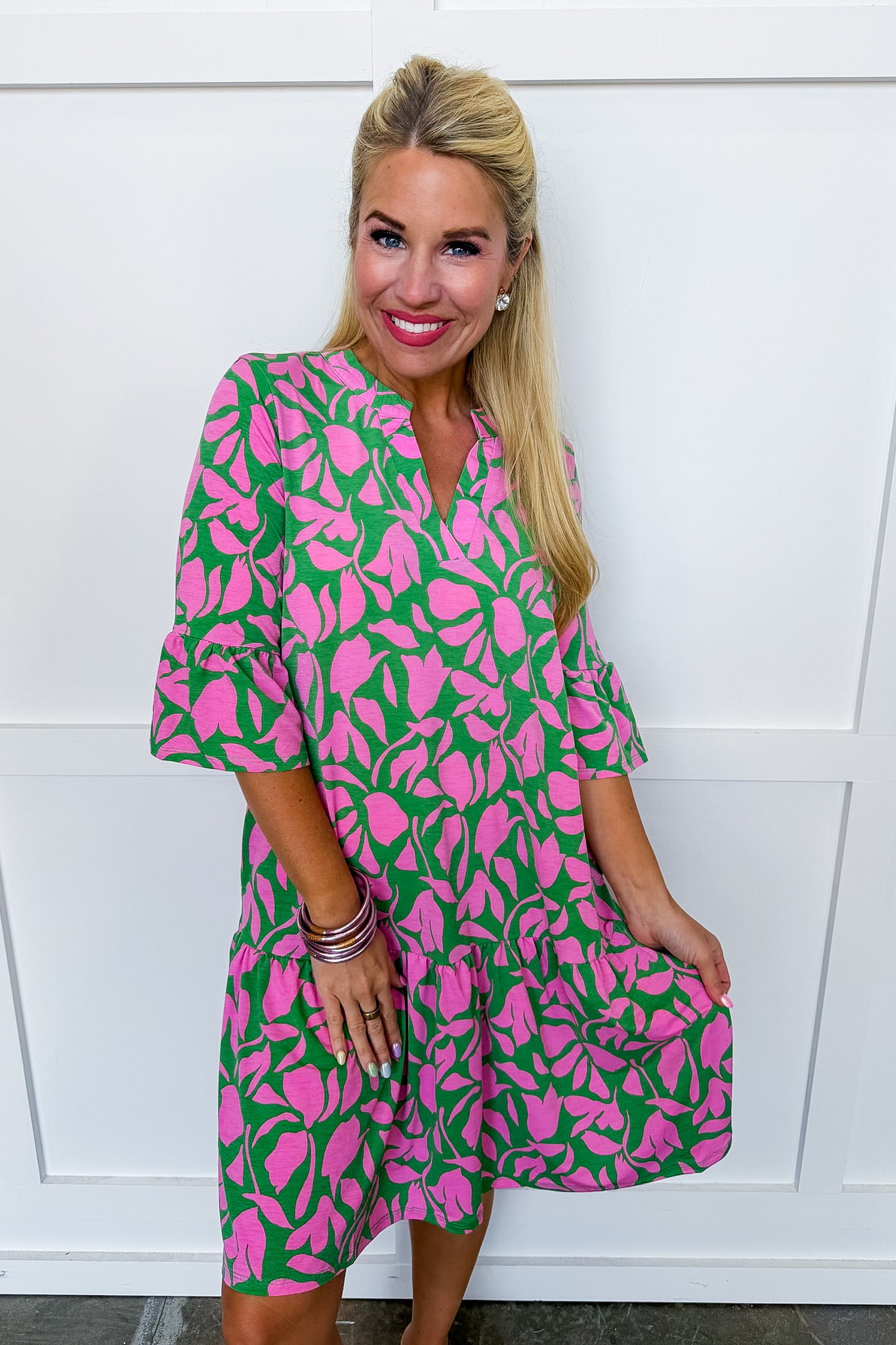 The Lizzy Sunday Dress is the effortless, polished piece you’ll reach for again and again. Designed in the customer-favorite Lizzy silhouette, this dress features a flattering notch neckline, soft bell sleeves, and a drop waist with a ruffle hem for easy movement. Made from a non-wrinkle, lightweight fabric, it’s a true throw-on-and-go style that looks put-together with minimal effort. Modest and appropriate for church, yet versatile enough for brunch, events, or everyday wear, this dress is a closet staple. Available in multiple prints for endless styling options.