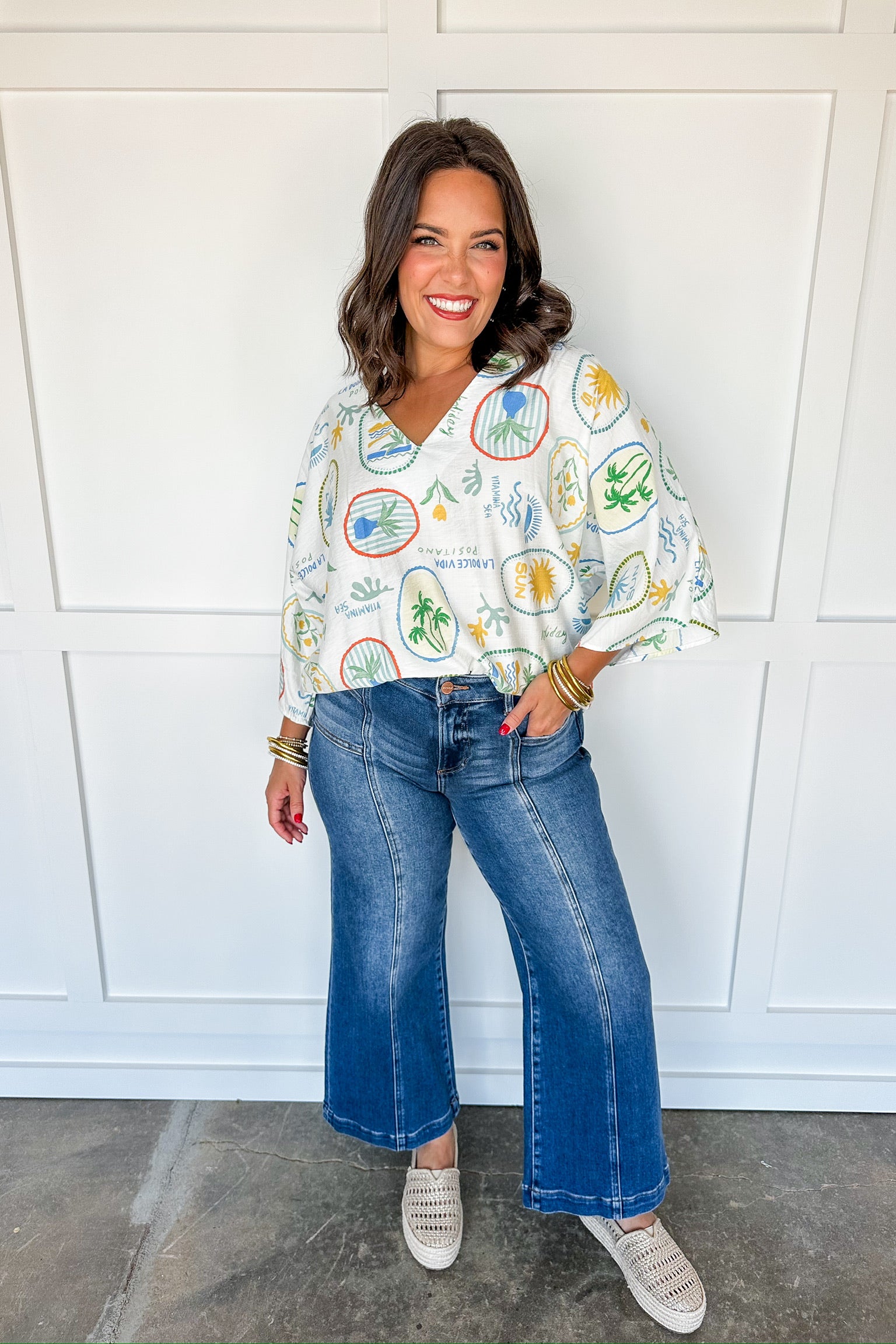 Vacation is calling! This Endless Summer Vibes Printed White Top pairs effortlessly with your favorite shorts or jeans, making every day feel like a getaway. Crafted for comfort and style, it’s perfect for relaxing, exploring, or dancing under the sun. Let your outfit take you places—no passport required!