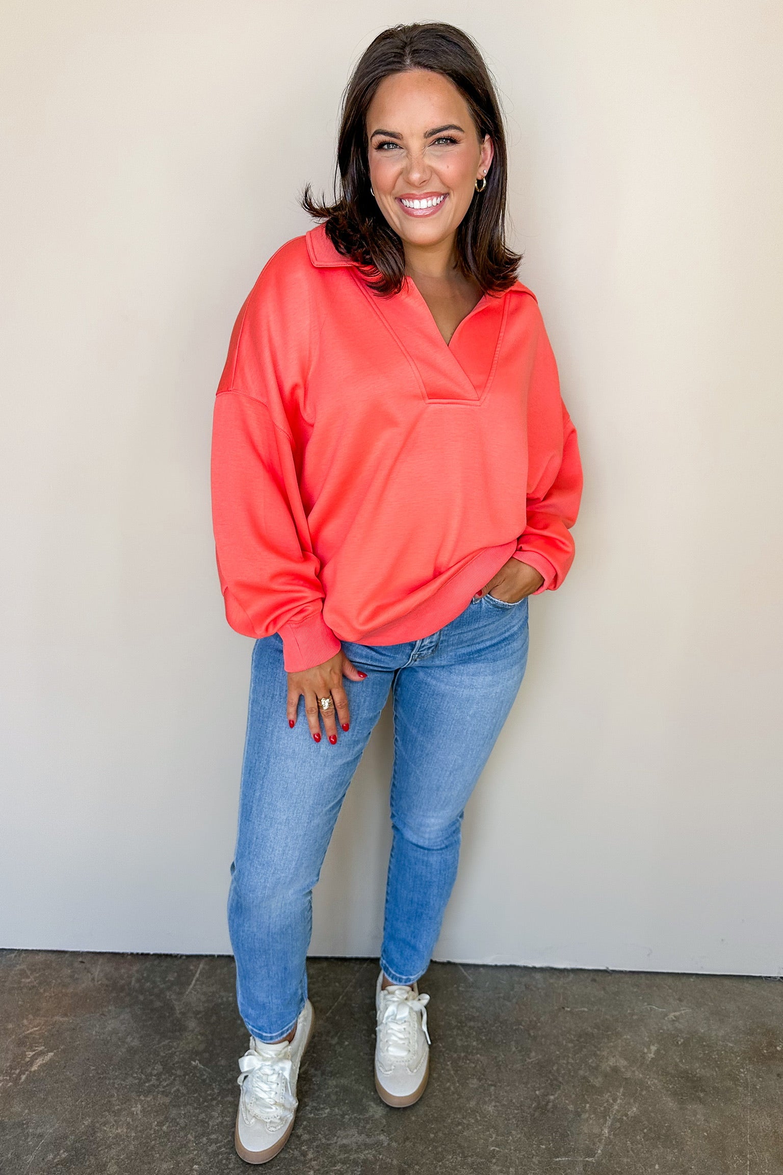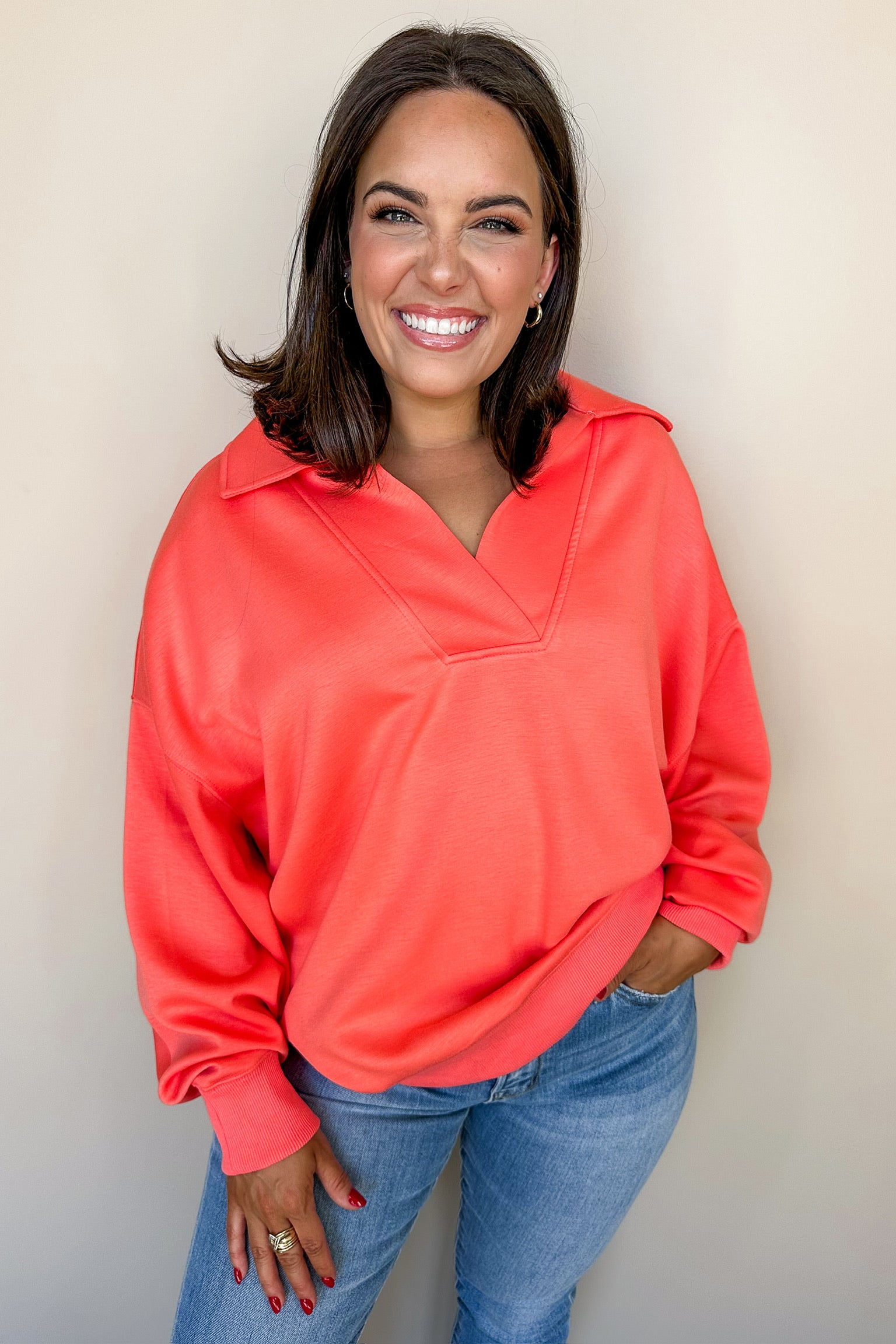 Elevate your wardrobe with this oversized long sleeve top, designed for effortless style and comfort. Featuring a refined V-neck with subtle collar detail, it offers a chic yet relaxed silhouette. Crafted from soft, cozy fabric, this piece is perfect for layering or wearing on its own, making it an ideal go-to for both casual and polished looks.