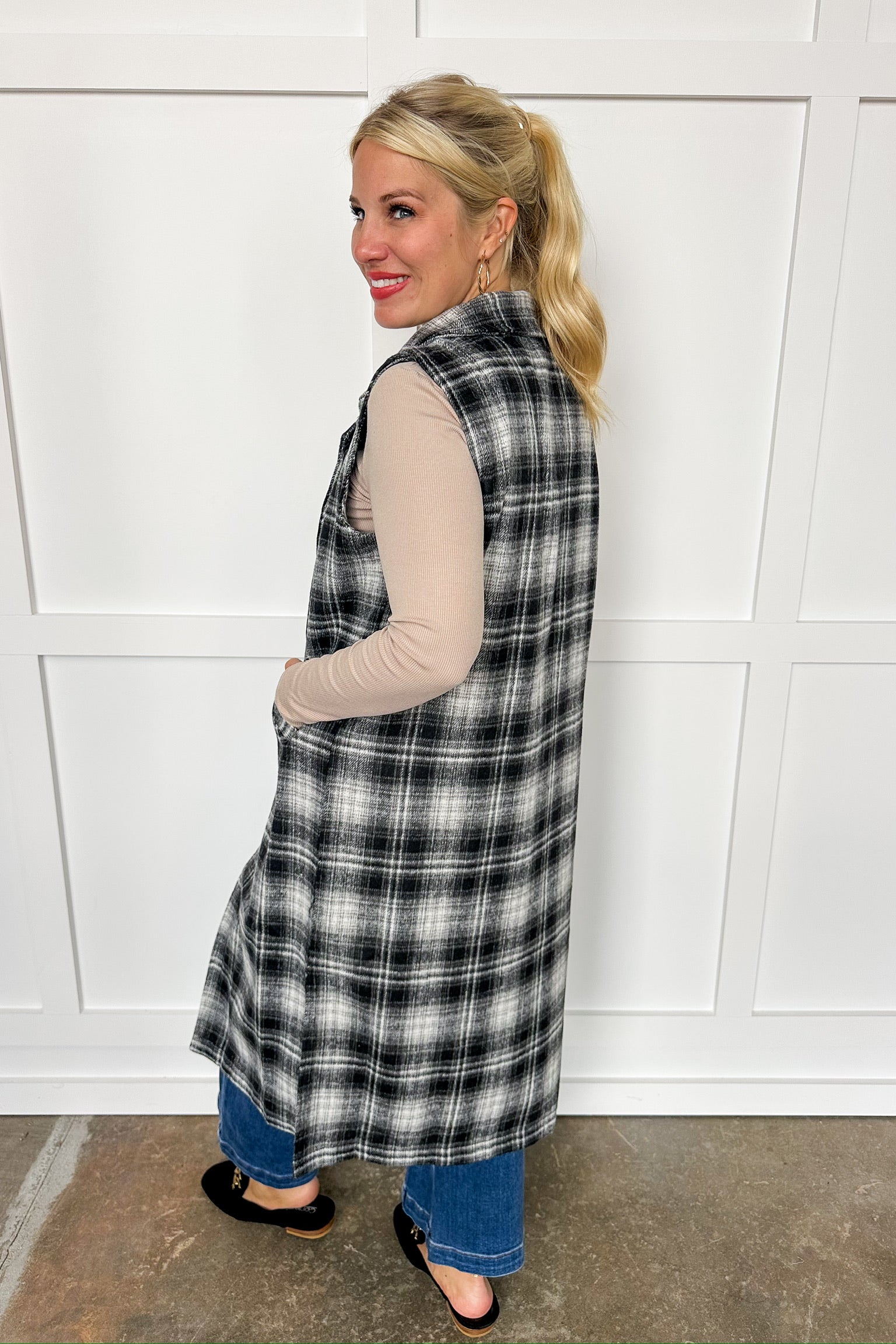 Sweater Weather Long Plaid Vest