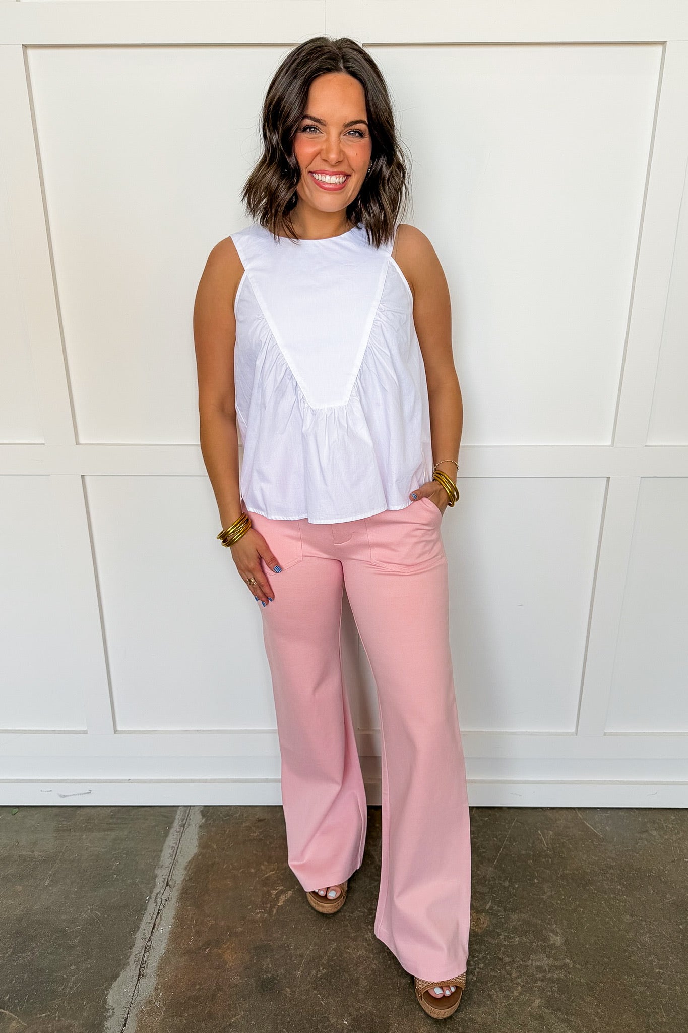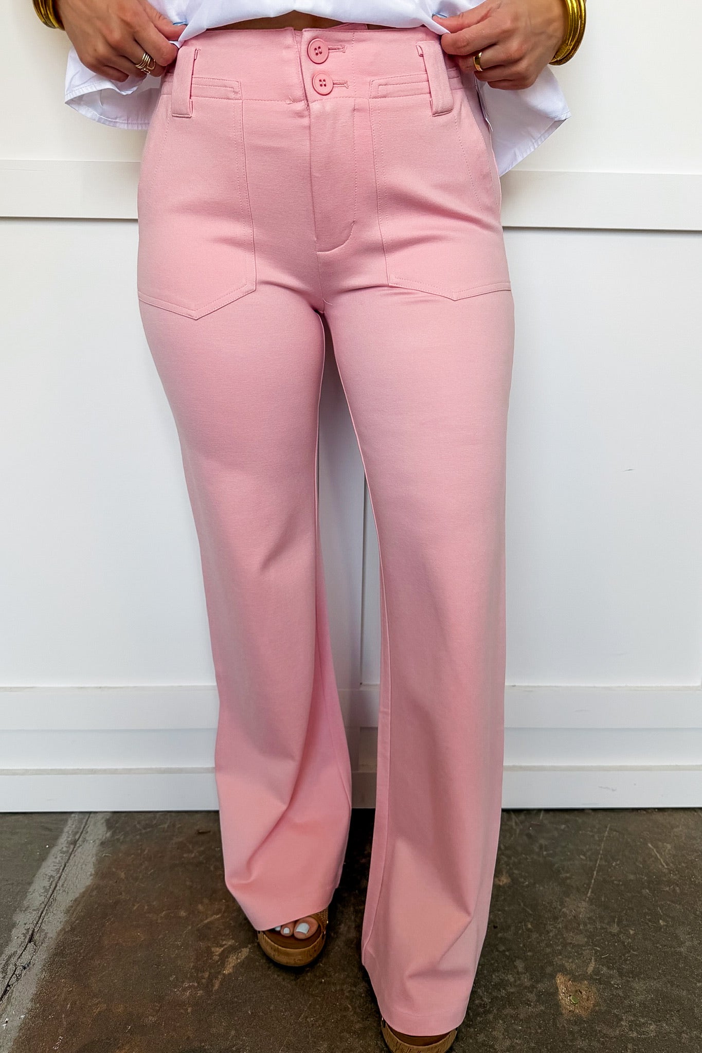 Polished, flattering, and effortlessly stylish — The Blush Boulevard Pants are the perfect addition to your everyday wardrobe. Featuring a soft blush hue with a structured silhouette, these pants offer a tailored look while still feeling comfortable and easy to wear.