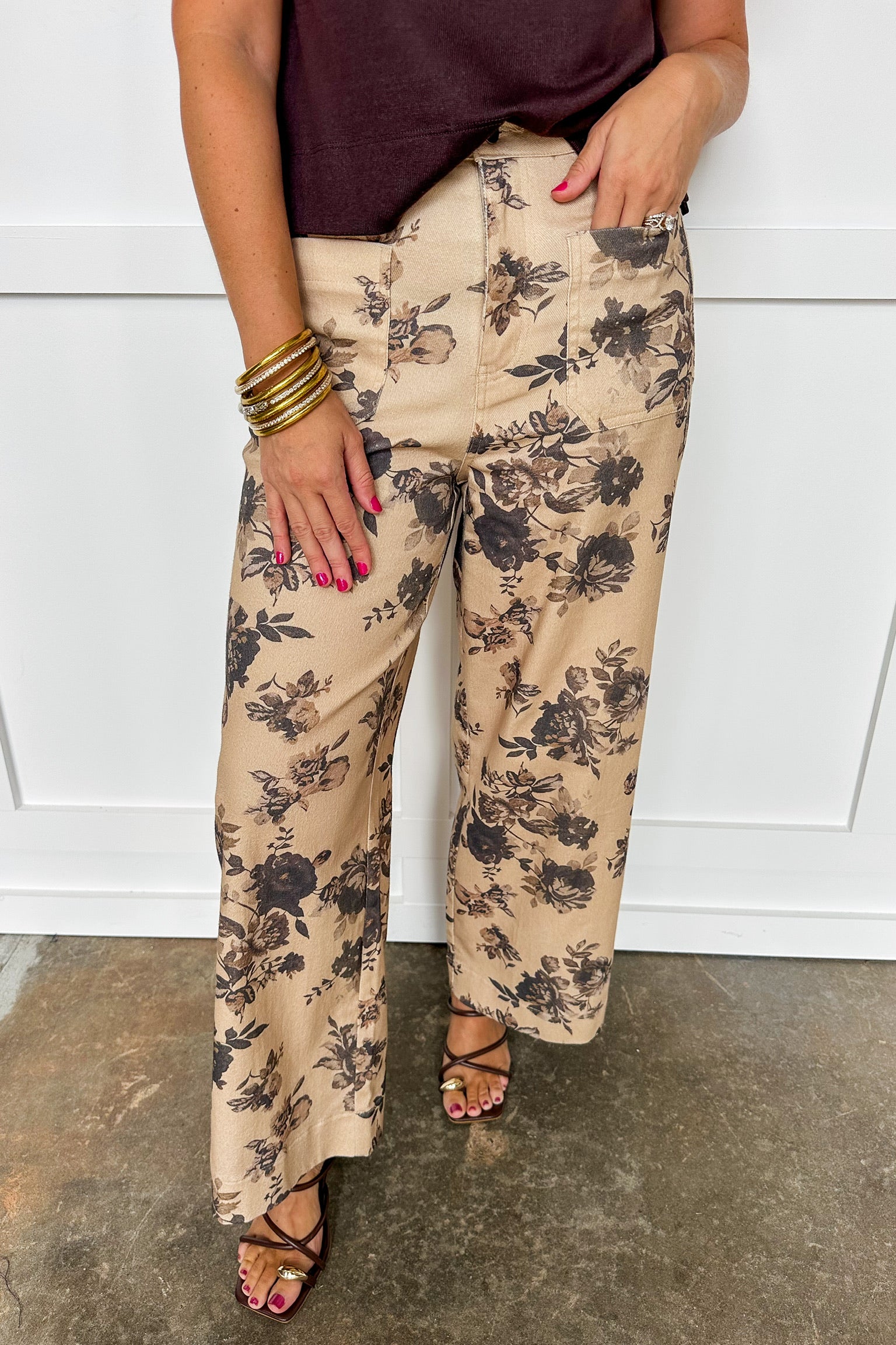 Step into playful elegance with these cream and brown floral pants. Featuring a high waist and a cropped straight leg, they offer a flattering fit that stays true to size. Perfect for mixing vibrant patterns with a chic silhouette, these pants add a fun twist to any outfit.