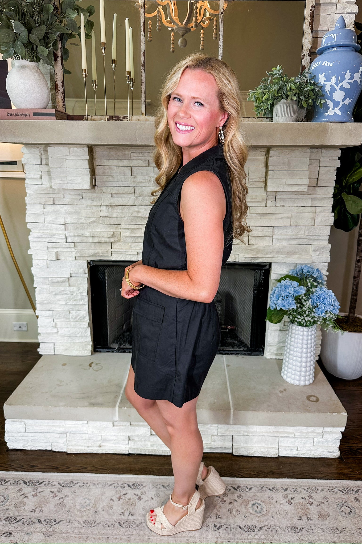 Polished meets playful in this sleek black romper, featuring a sharp lapel collar and classic button-down front. The tailored fit gives off major boss energy, while the romper cut keeps it effortlessly cool and flirty. Whether you’re headed to brunch, date night, or a rooftop hang, this one-piece wonder has you looking put-together in seconds—just add heels or sneakers and go!