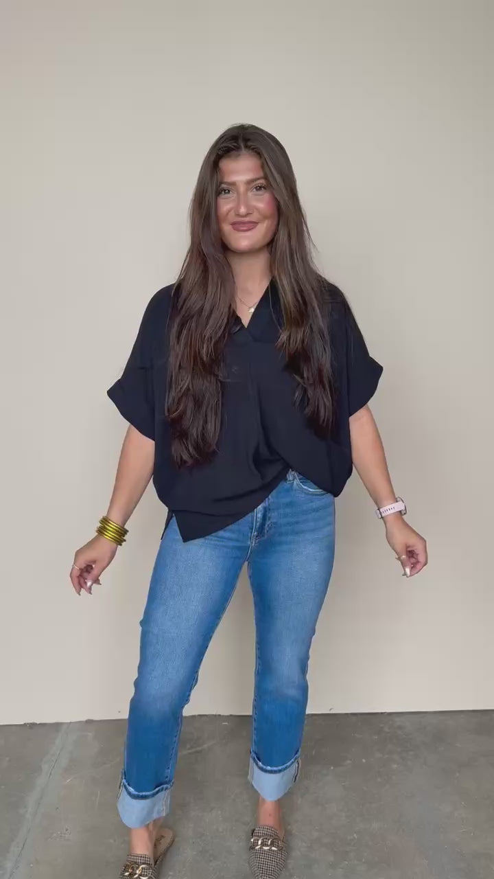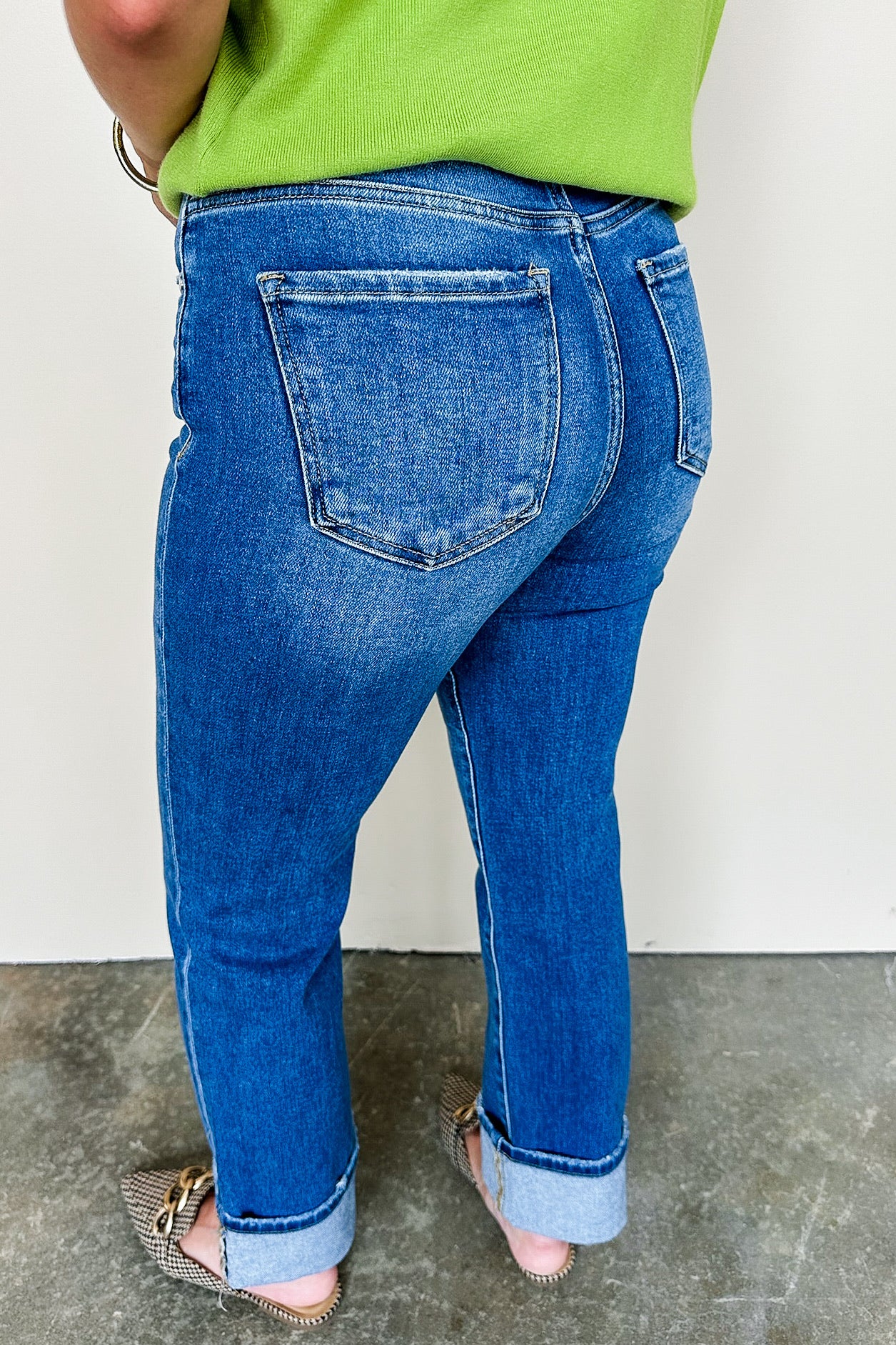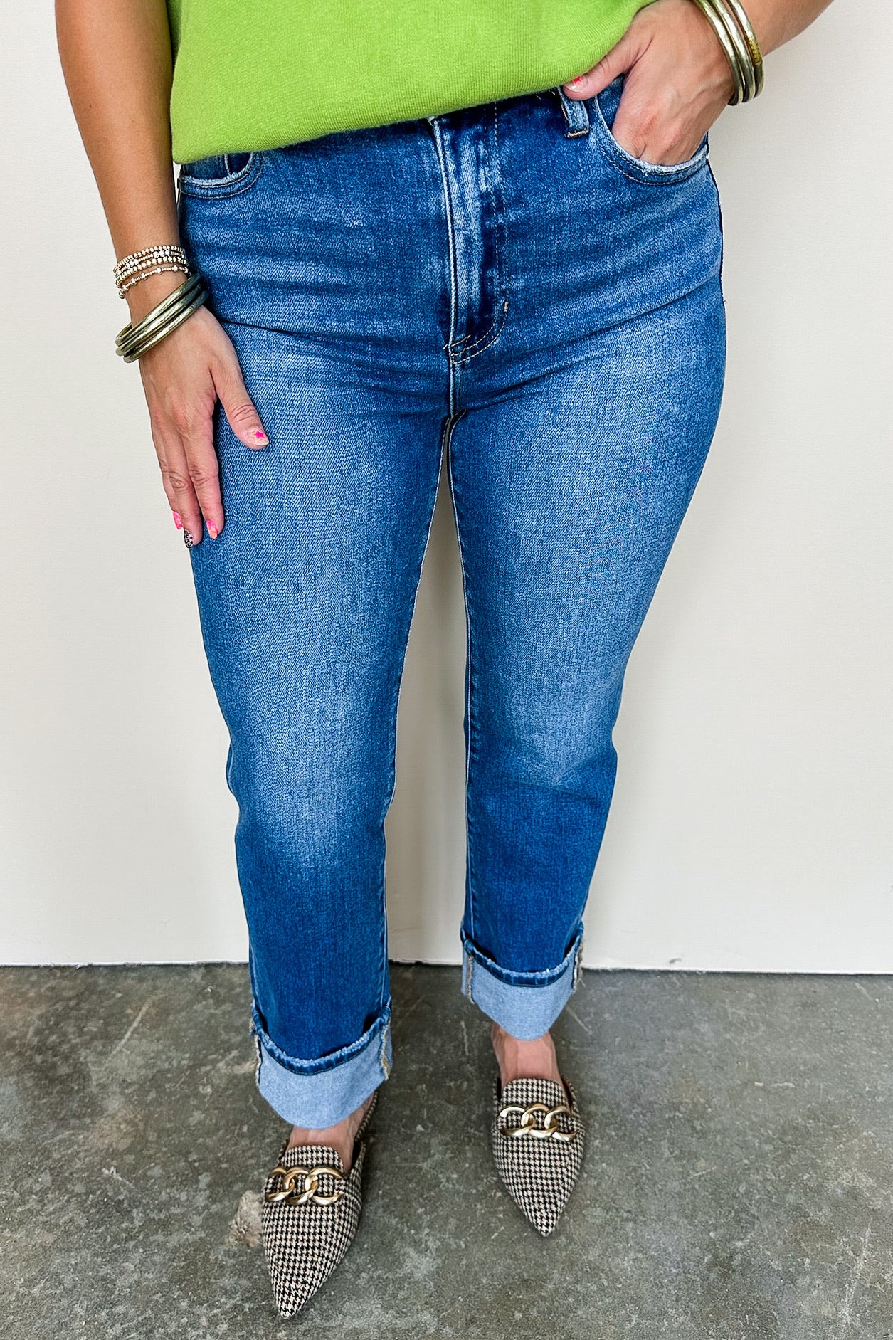 Step into effortless style with the Risen Dark Wash Cuffed Hem Jean. These high-waisted cropped jeans with a playful cuffed hem offer a flattering fit that stays true to size. The rich dark wash adds a chic edge, making them perfect for anything from weekend adventures to casual nights out. Elevate your denim game with a pair that’s as fun as it is flattering!