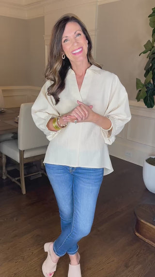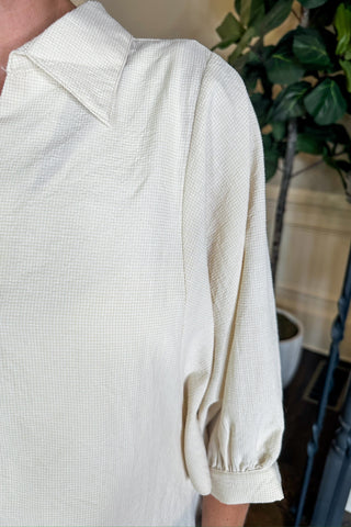 Indulge in elegance and style with our Textured Button Down Collared Top. Crafted from premium materials, this top features a textured finish and a classic button down collar for a timeless and sophisticated look. Elevate your wardrobe with this luxurious piece.
