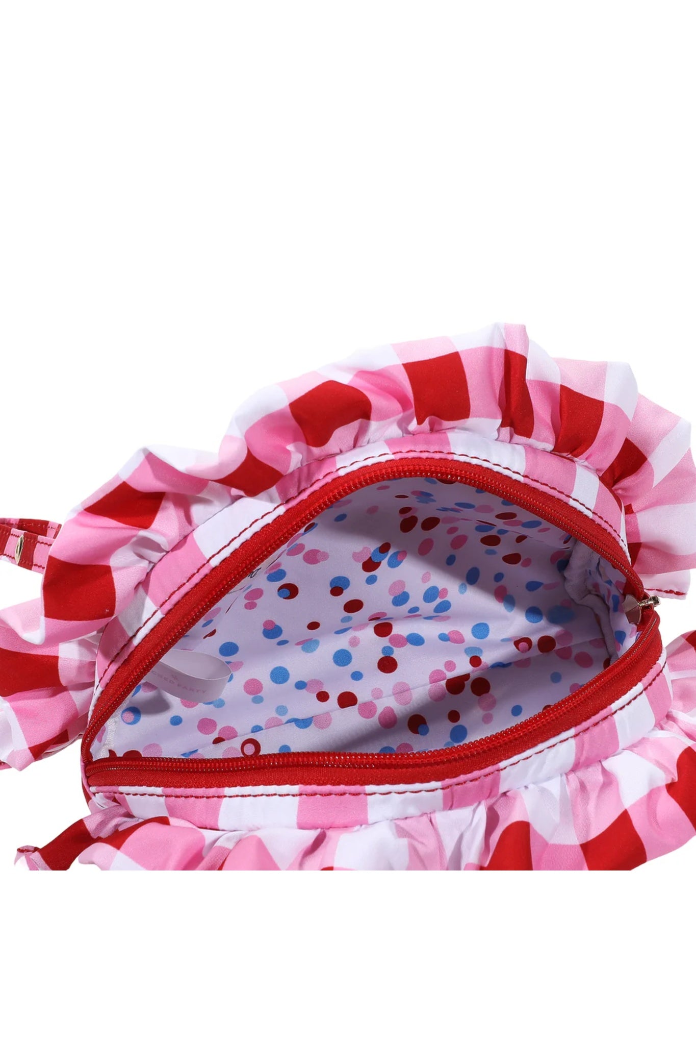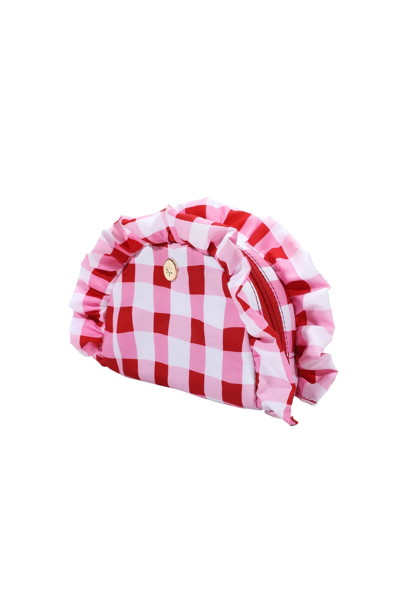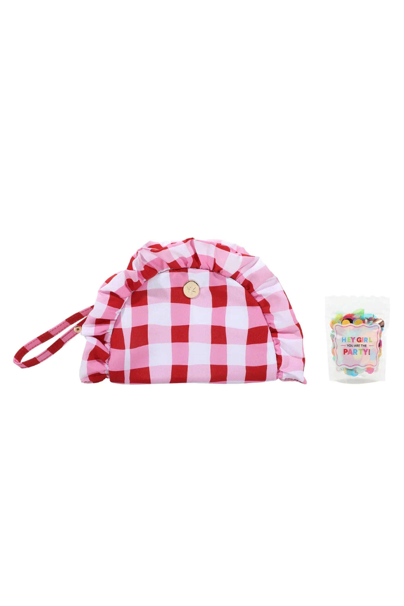 Sweet, sassy, and ready to party - this gingham clutch is serving major picnic-core charm. With its flirty ruffled edge and classic red-and-white check, it’s the perfect little pouch for tossing into your tote or carrying solo when the vibes call for cute and functional. Crafted with a softly structured feel and finished with our signature details, this pouch brings the fun on the outside - and keeps the party going on the inside, too. Perfect for stashing essentials, sprinkling a little confetti energy into your day, or gifting to your favorite party person.