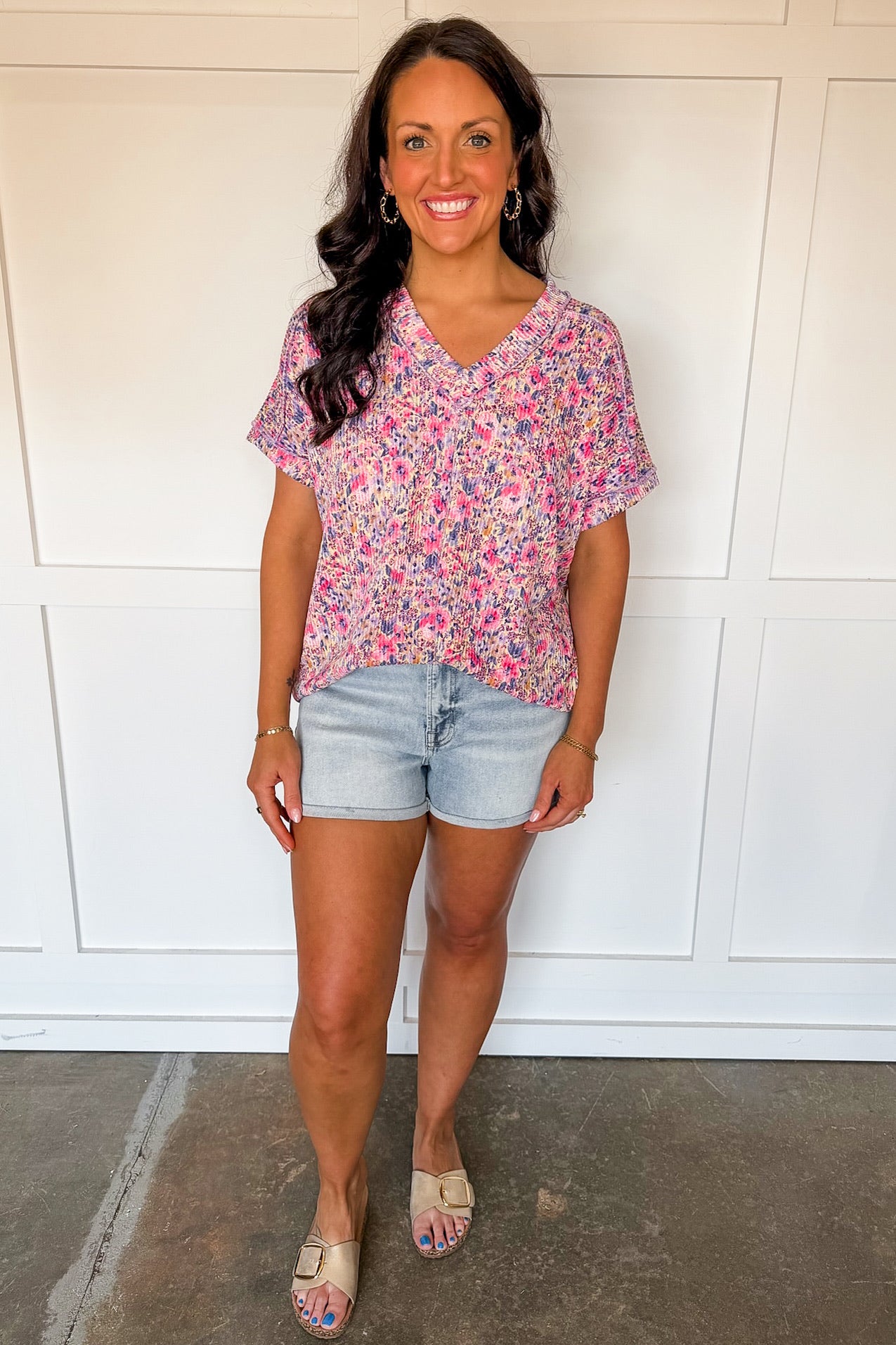 Easy, effortless, and full of feel-good charm — the Bloom Where You're Planted Floral Top is the perfect throw-on-and-go tee for everyday style. Featuring a soft floral print with a relaxed silhouette, this top brings a pop of color and personality to any outfit. The lightweight fabric and easy fit make it perfect for busy days when you want to look cute without overthinking it. Pair it with denim, shorts, or casual pants for an easy outfit that feels comfortable, cheerful, and ready for whatever the day brings.