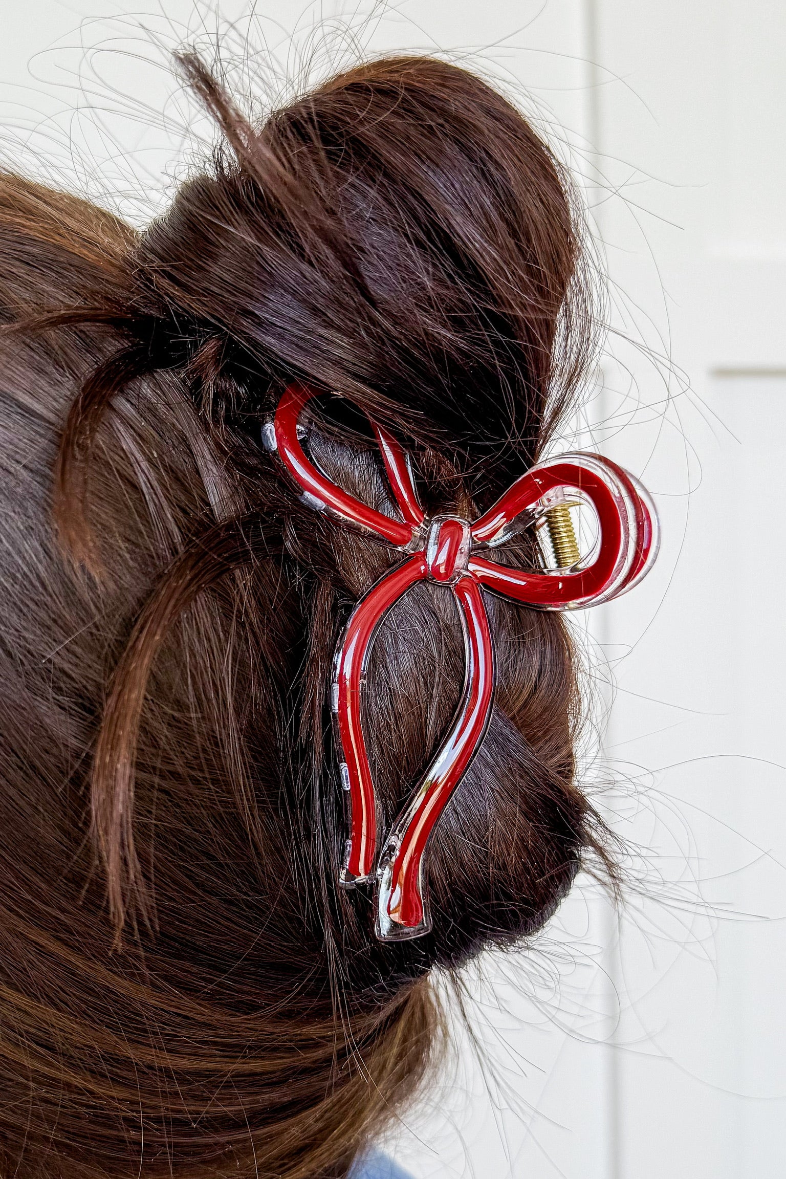 Add a charming touch to your hairstyle with this Crimson Bow Hair Claw Clip. Its soft cream color and playful bow design make it perfect for securing your hair while adding a dash of whimsy. Lightweight and easy to use, it’s a fun accessory for everyday wear or special occasions.