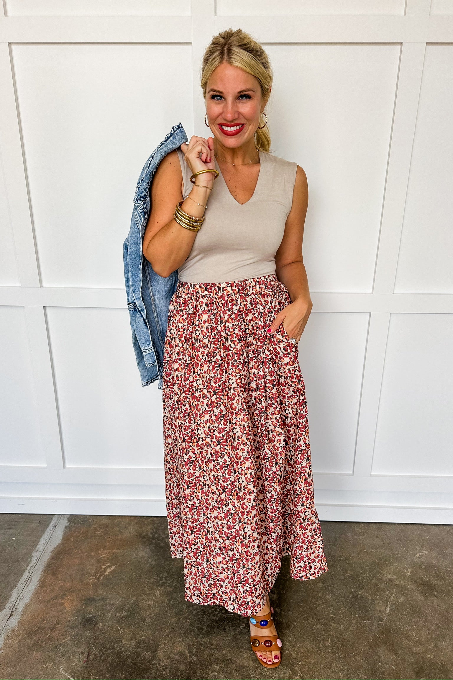 Elevate your wardrobe with the Autumn Embers Matching Skirt Set, featuring a high-neck swing top that gracefully drapes for a refined silhouette. The flowy skirt includes convenient pockets and a discreet back zipper, blending elegance with practicality. Perfect for occasions that call for understated sophistication.