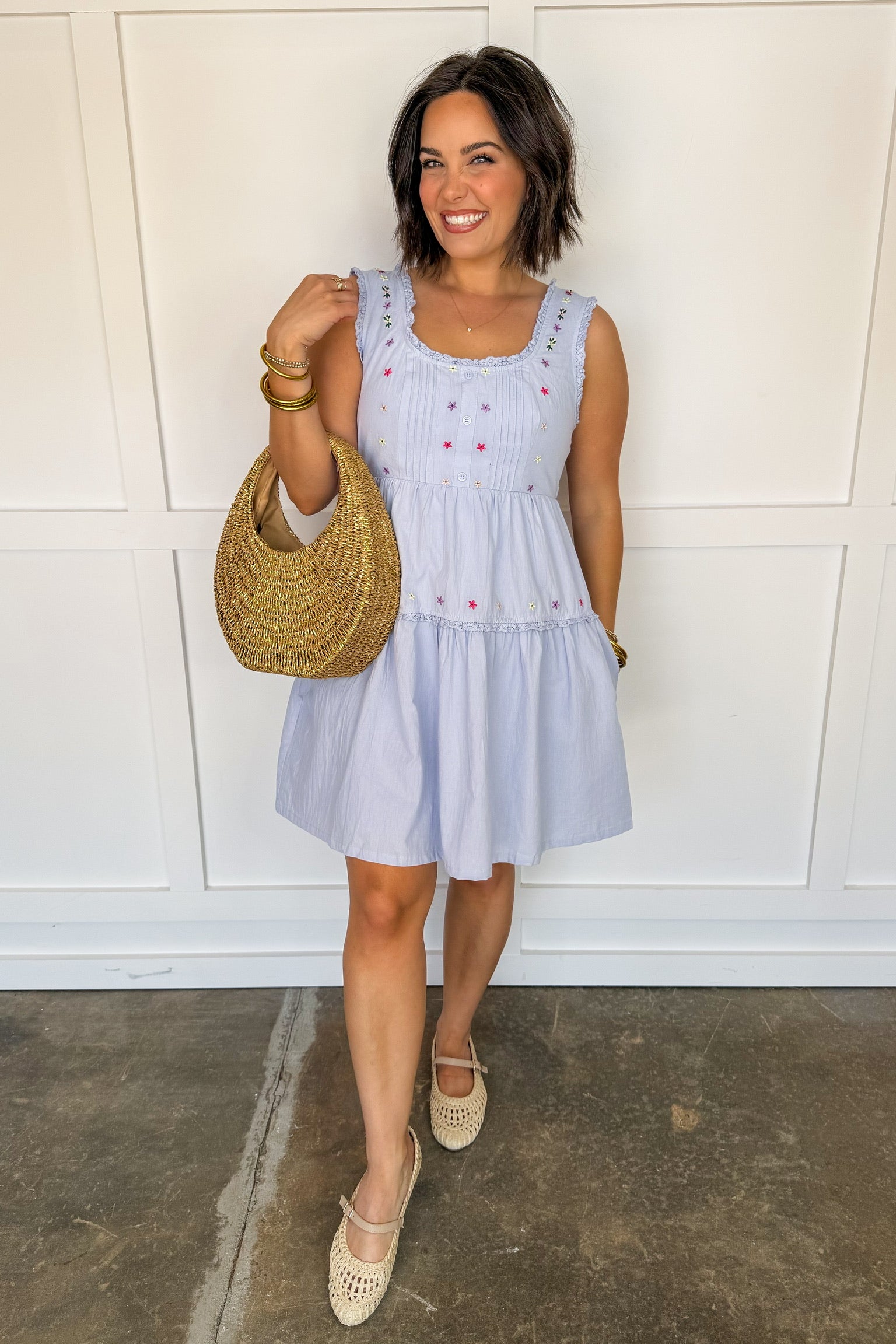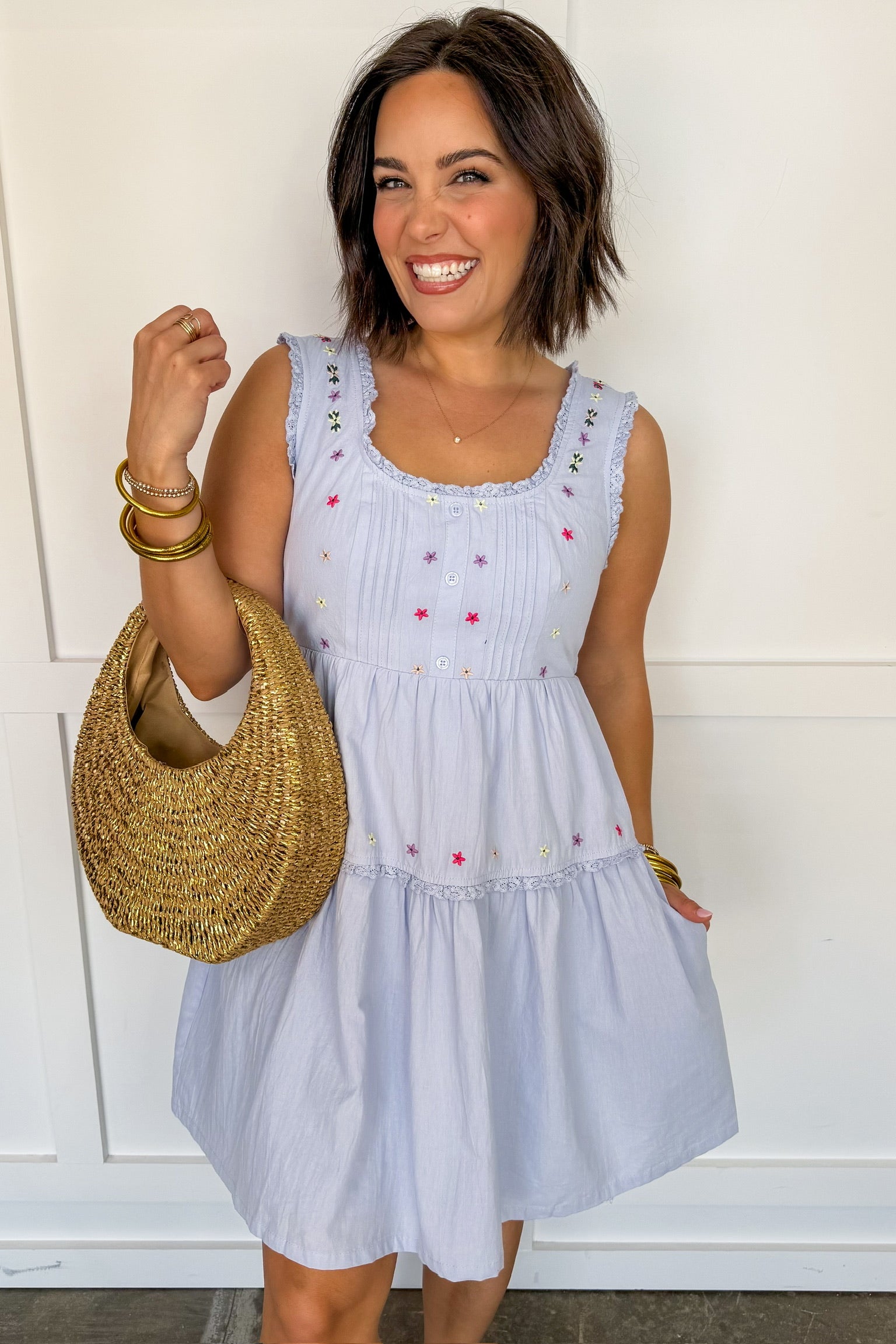 Delicate, dreamy, and effortlessly romantic, the Love Story Petal Dress is made for your sweetest moments. Featuring soft floral-inspired detailing and a flattering, feminine silhouette, this dress brings a light and airy feel to your wardrobe. The subtle texture, dainty accents, and flowy skirt create a graceful look that’s perfect for everything from brunch dates to special occasions. Easy to wear and even easier to love, this is the kind of dress that feels like a little love story every time you put it on.