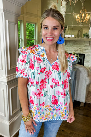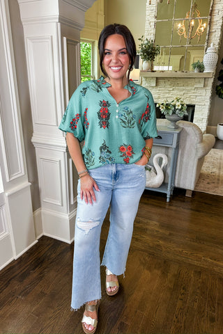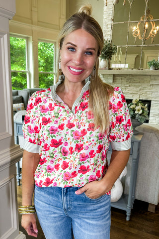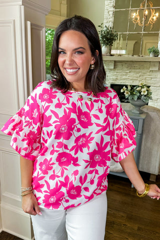 Threaded Rose Scallop Sleeve Crochet Knit Top