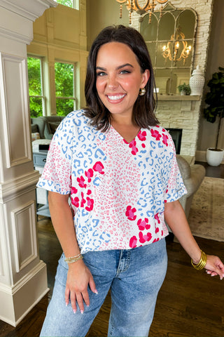 Wild Crush Mixed Cheetah Print V Neck Shift Top