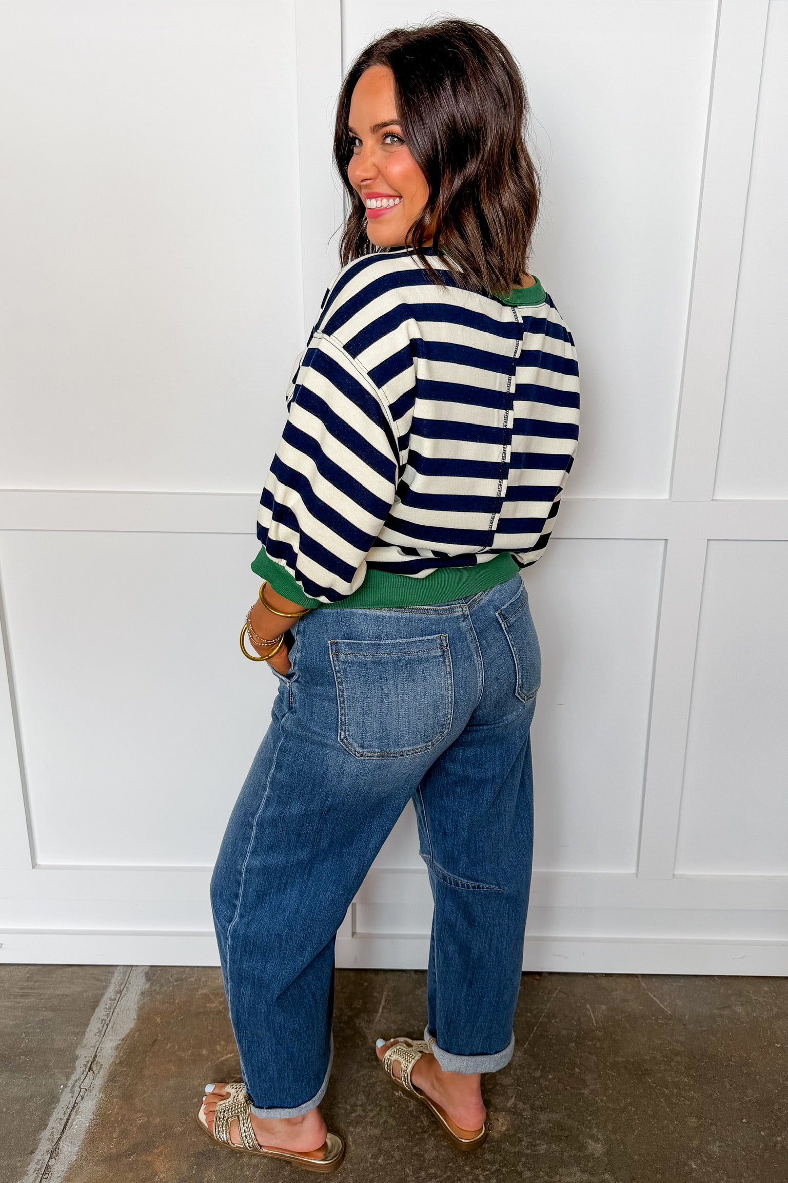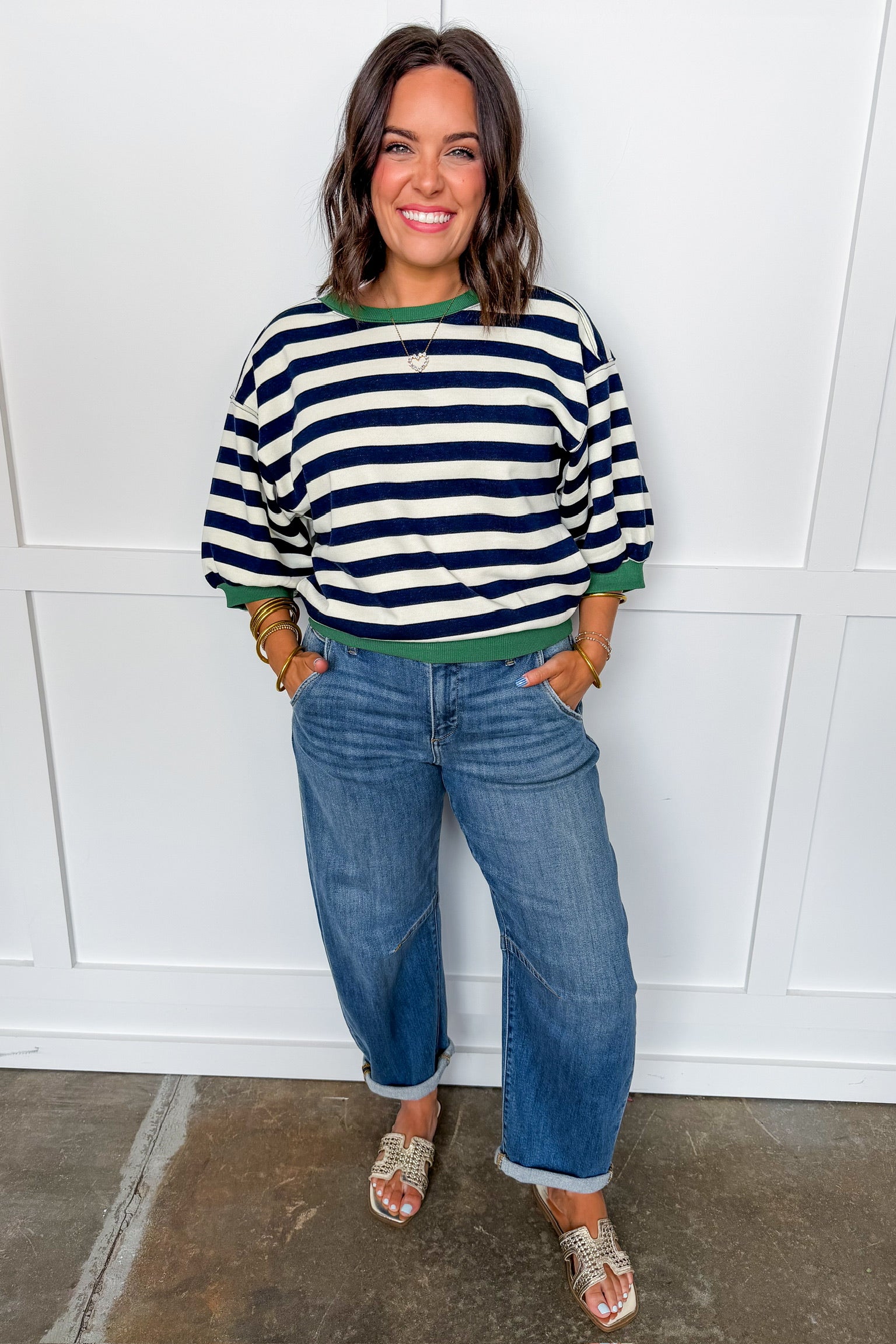 Effortlessly classic with a sporty twist — The Harbor Stripe Pullover is the perfect blend of timeless stripes and elevated comfort. Featuring bold navy and white stripes with contrast trim details, this top brings a polished yet relaxed feel to your everyday look.