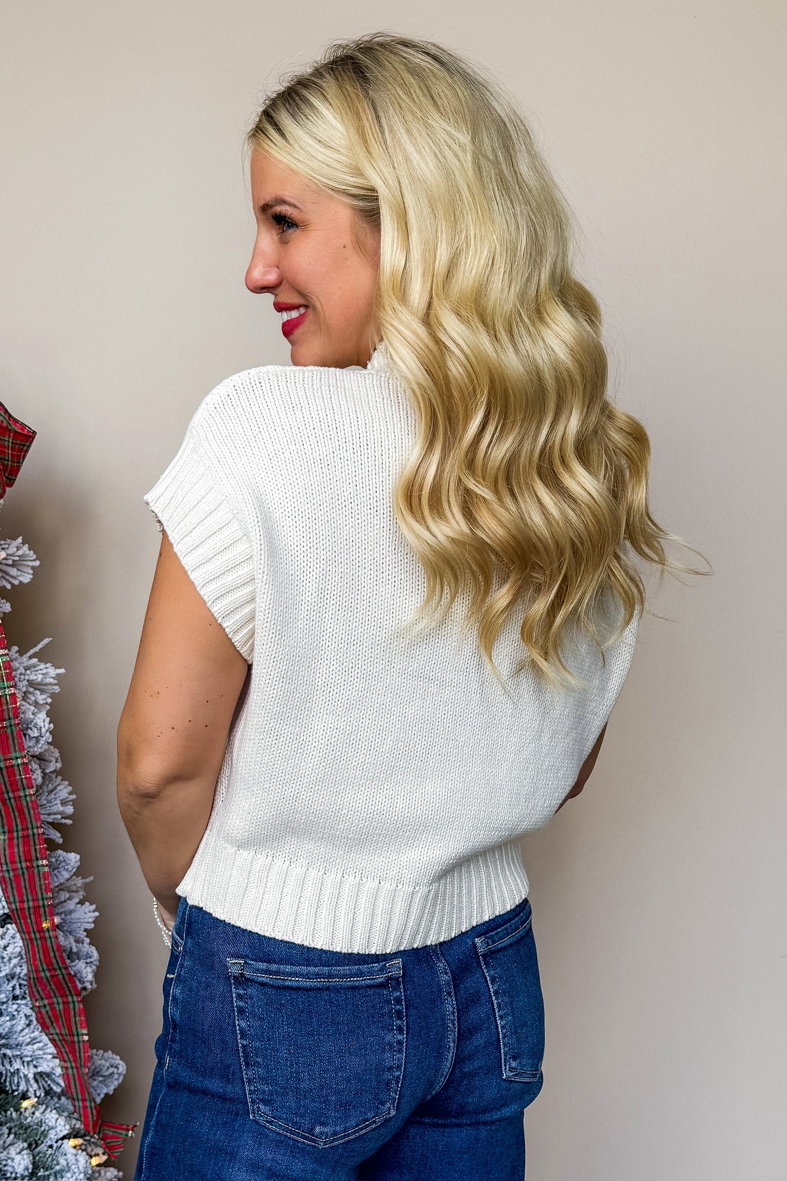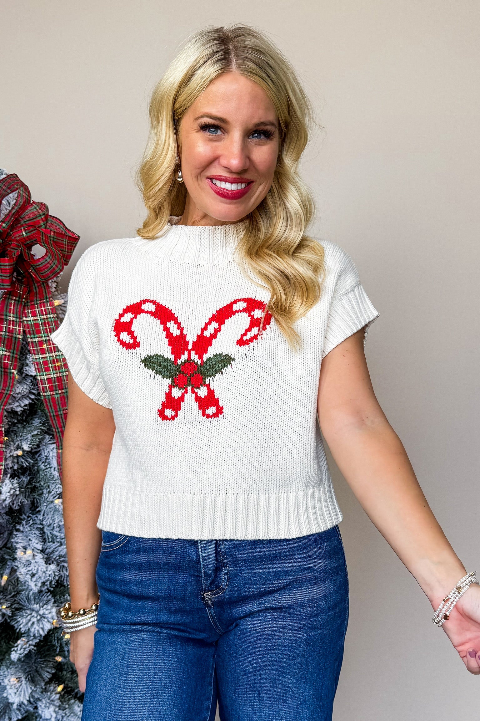 Bring holiday joy to your wardrobe with the Candy Cane Cheer Knit Sweater! This cozy cream knit features a playful candy cane motif at the front — perfect for festive gatherings, winter outings, or adding a merry twist to your everyday look. Designed with a mock neck and short sleeves, it’s the ideal layering piece for the season.