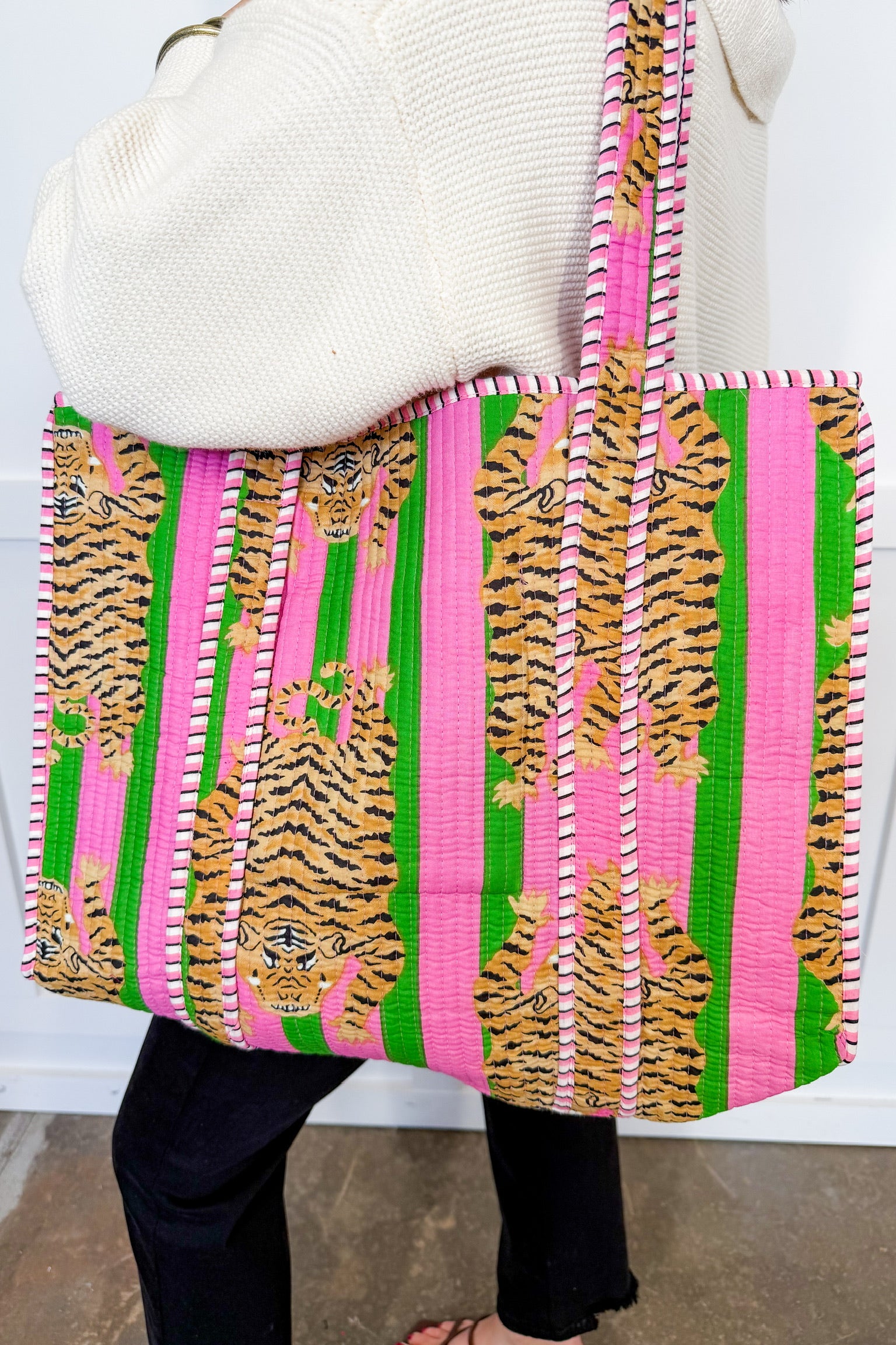 Hot Pink Deal - Pink & Green Tiger Getaway Tote