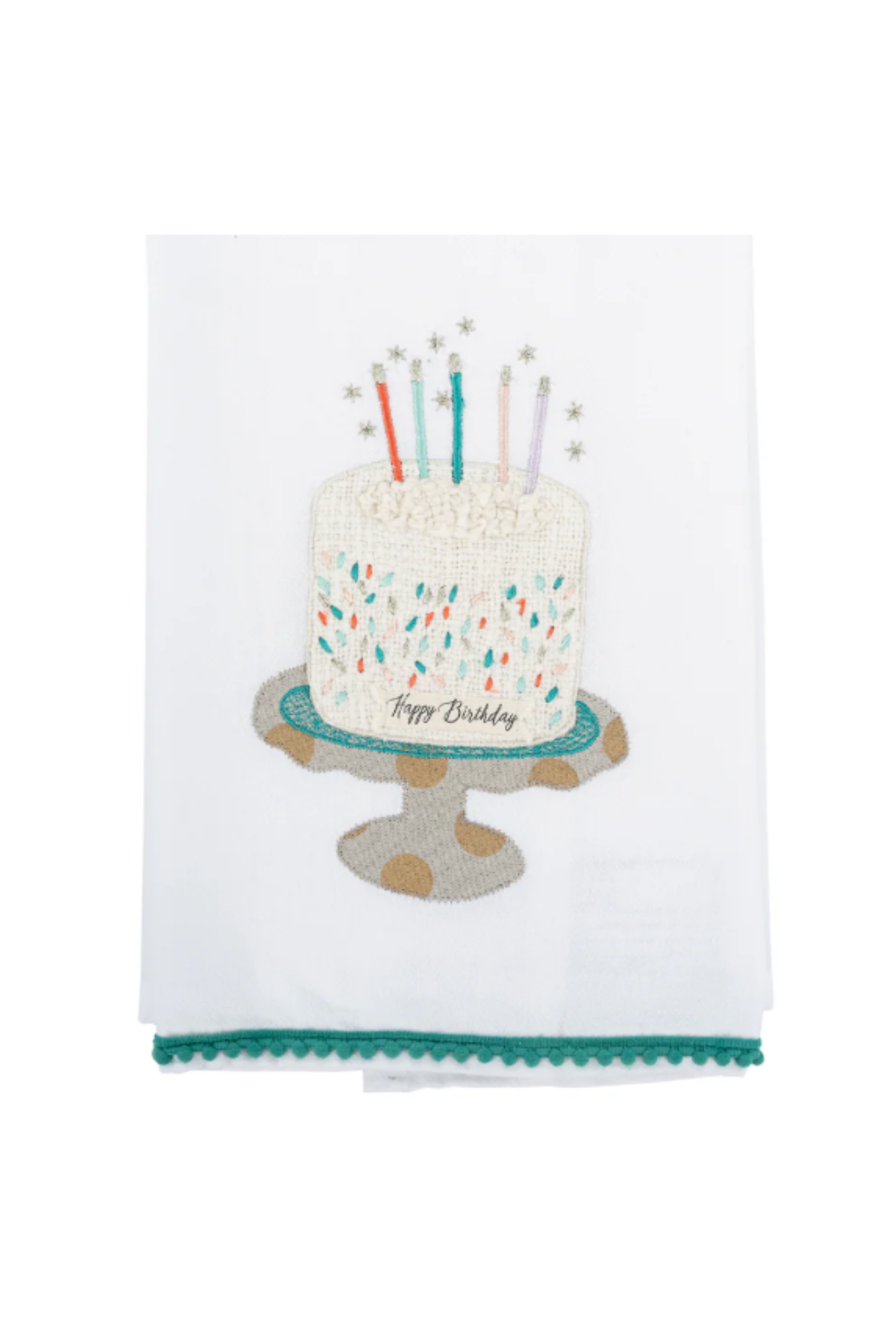 Celebrate another trip around the sun with the Make a Wish Birthday Tea Towel. Featuring an adorable embroidered cake topped with colorful candles and delicate details, this towel adds the perfect festive touch to any kitchen. Finished with a playful pom trim, it’s a thoughtful hostess gift, birthday add-on, or charming way to decorate for the celebration.