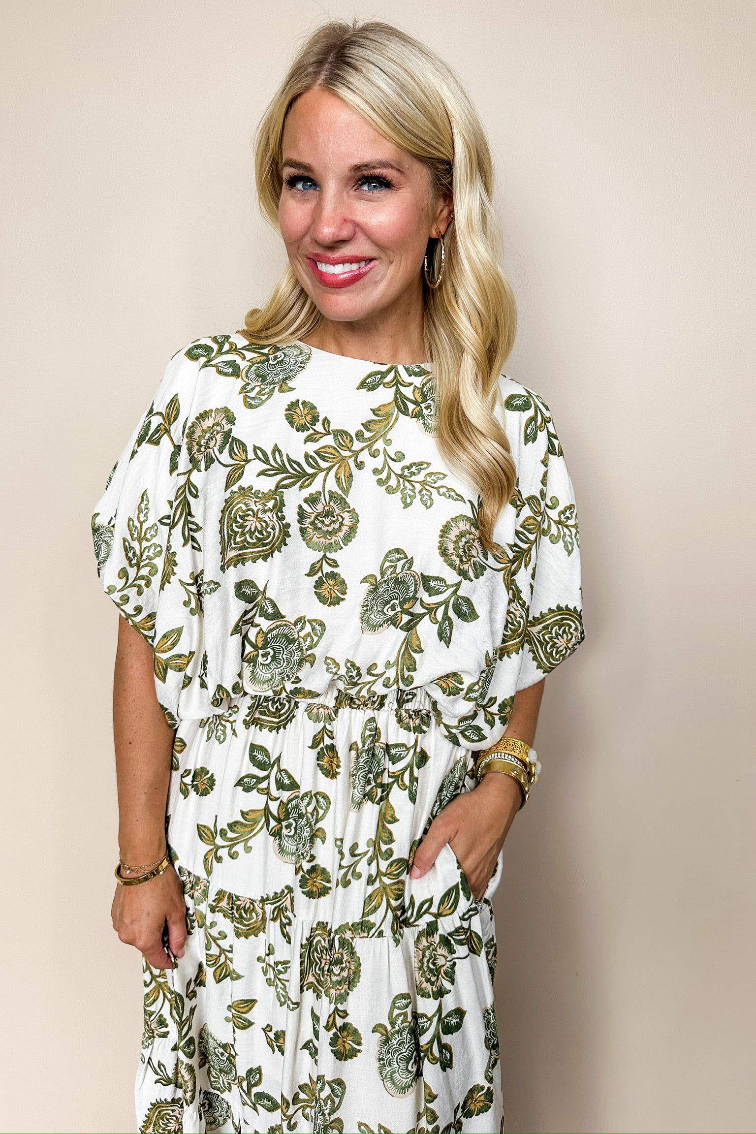 This playful matching set features a breezy short sleeve top paired with a long skirt, both in charming Sonoma olive and white. Designed with pockets for added convenience, you can mix and match the pieces or wear them together for a fresh, coordinated look that's perfect for any casual day out.