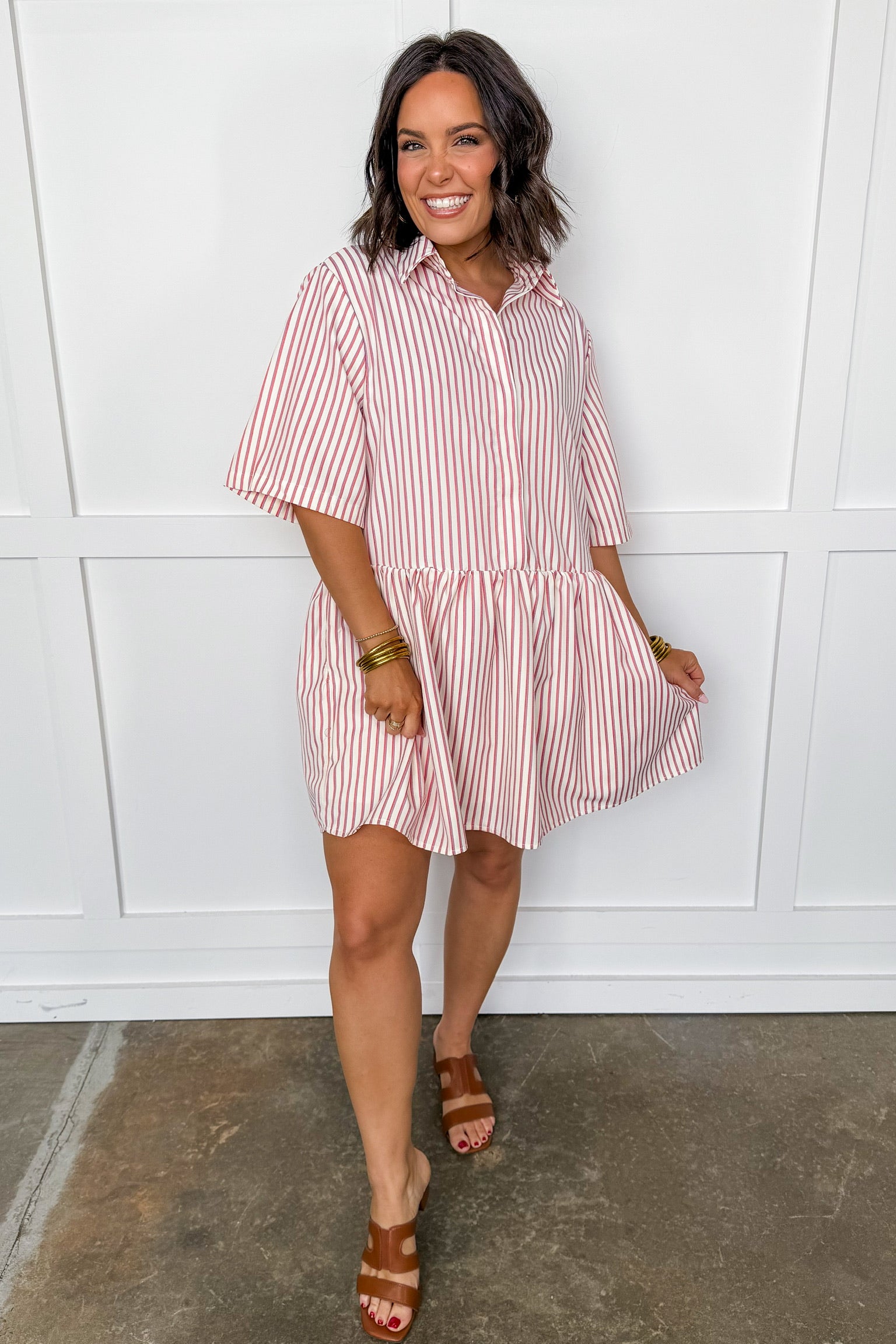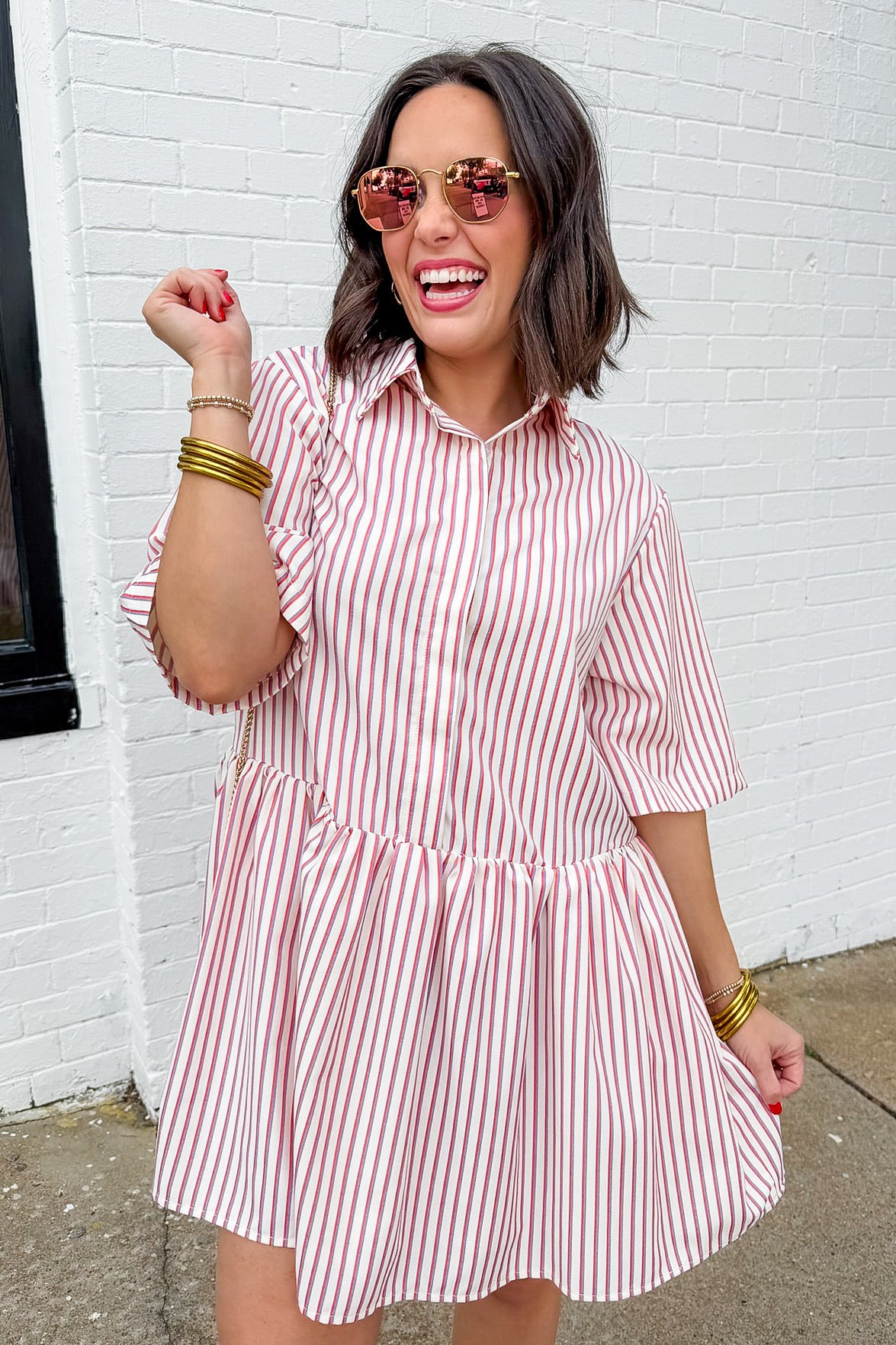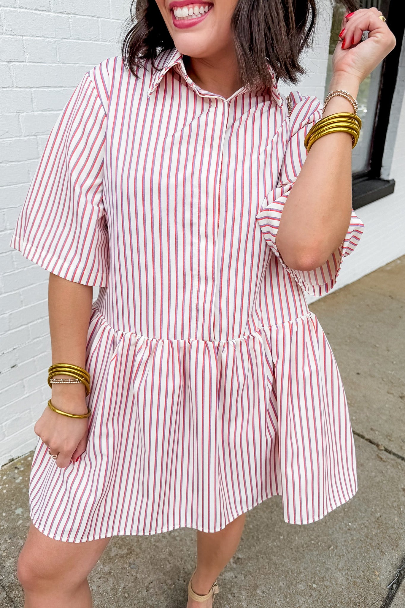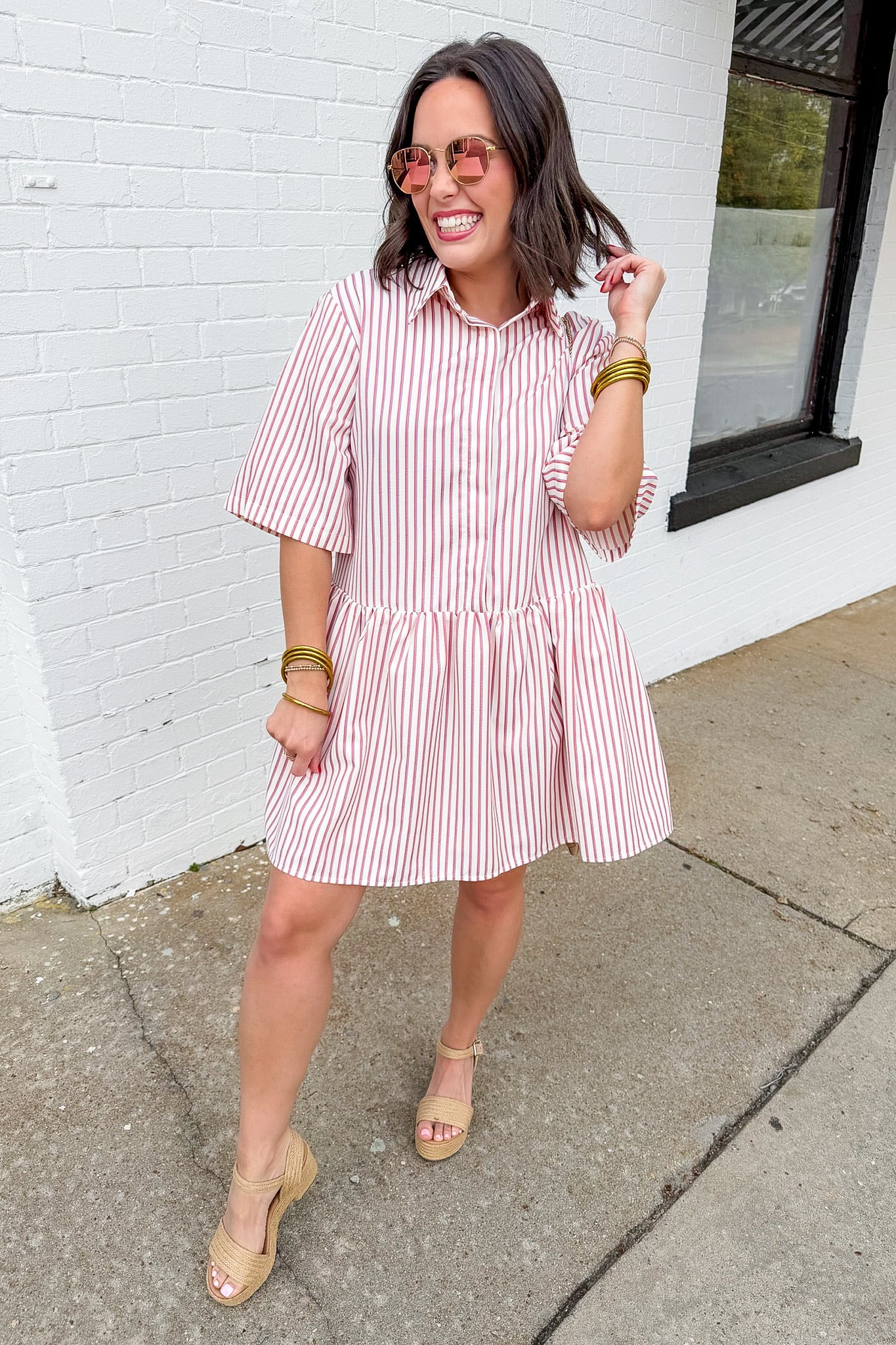Bright, playful, and effortlessly charming, The Just Peachy Striped Dress is made for sunny days and easy styling. Featuring soft pastel stripes and a flattering, relaxed silhouette, this dress brings a fun pop of color while staying comfortable and wearable. With its collared neckline and breezy fit, it’s the perfect throw-on-and-go piece for everything from weekend plans to casual outings.
