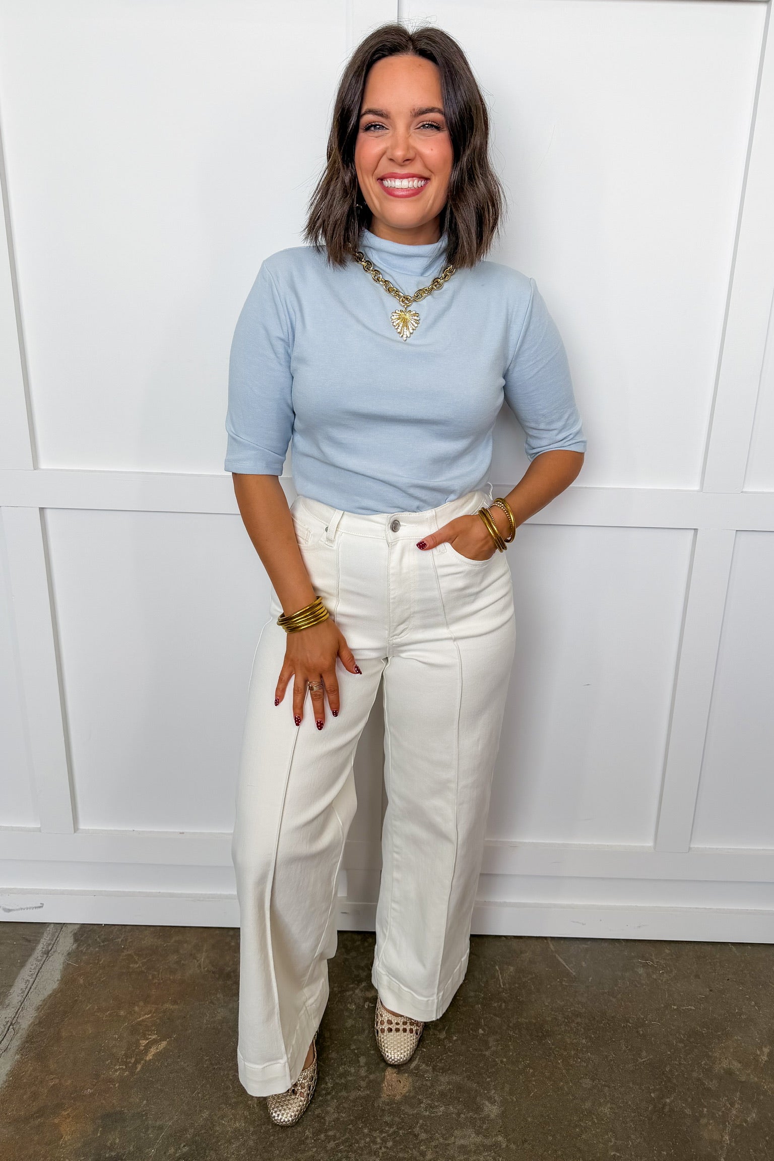 The Everyday Luxe Mock Neck Top is the perfect elevated essential for effortless layering. Designed with a soft mock neckline and a lightweight feel, this top offers a sleek, polished look that’s easy to wear on its own or layered under vest/jackets, sweaters, or blazers. A true closet staple, it transitions seamlessly from casual days to dressed-up moments.