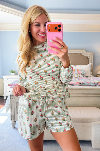 The Annie Short Pajama Set in Rosette Charm Pink by Mary Square