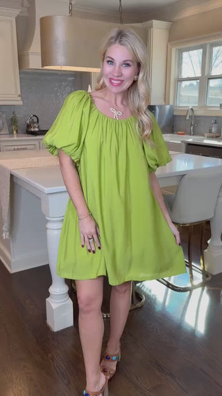Hot Pink Deal - Lime Light Moment Puff Sleeve Dress