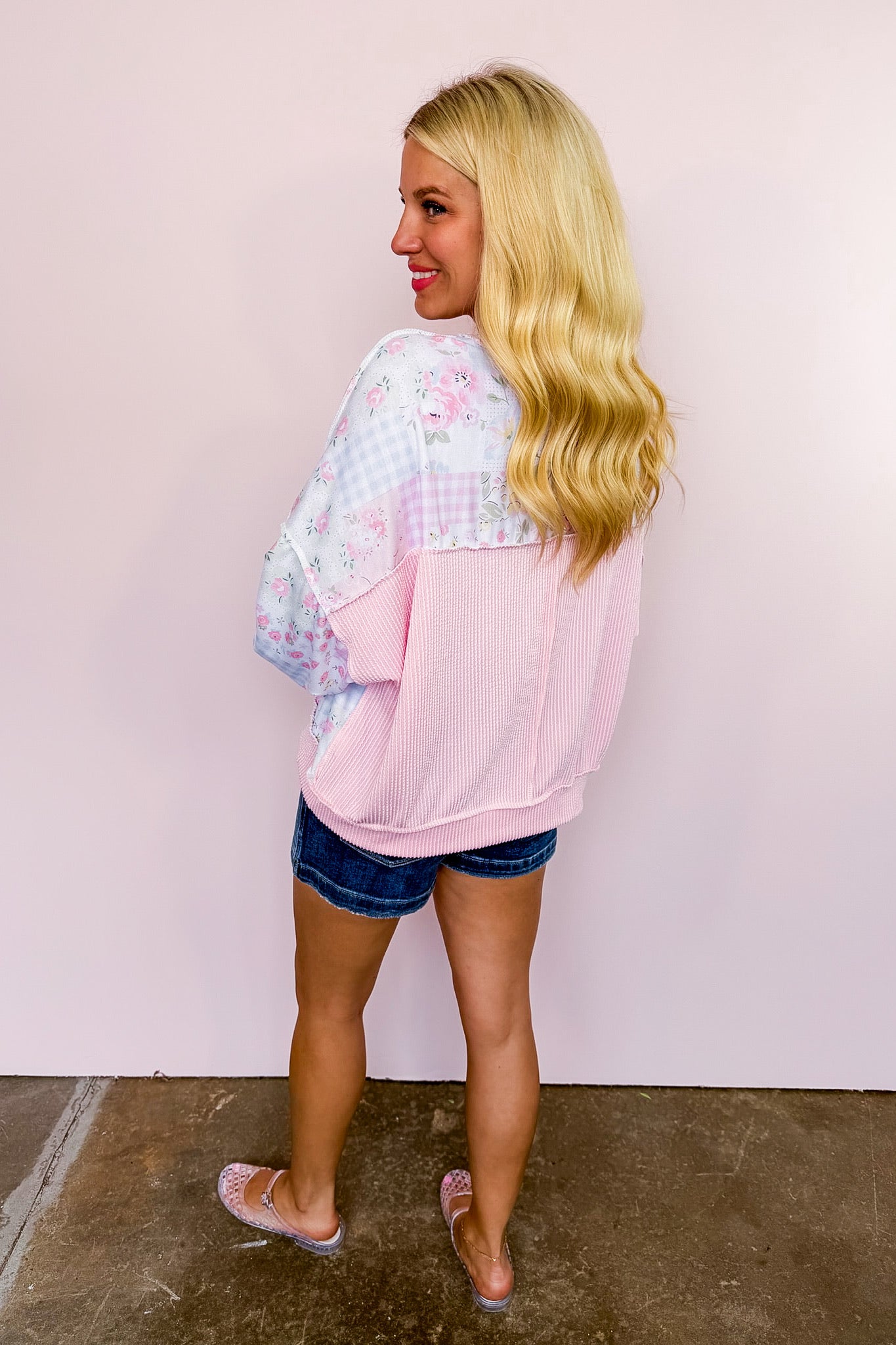 Soft, sweet, and effortlessly charming — the Petals & Pastels Patchwork Pullover is the definition of cozy-cute. Designed with a dreamy mix of floral prints and pastel patchwork, this pullover brings a touch of vintage-inspired charm to your everyday look. Finished with ribbed trim and a relaxed fit, it’s perfect for pairing with white denim, leggings, or your favorite shorts for an easy, feel-good outfit.