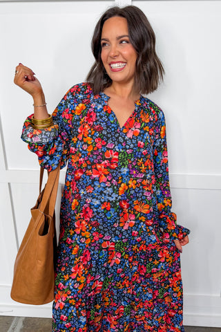 Forever Floral Navy Midi Dress