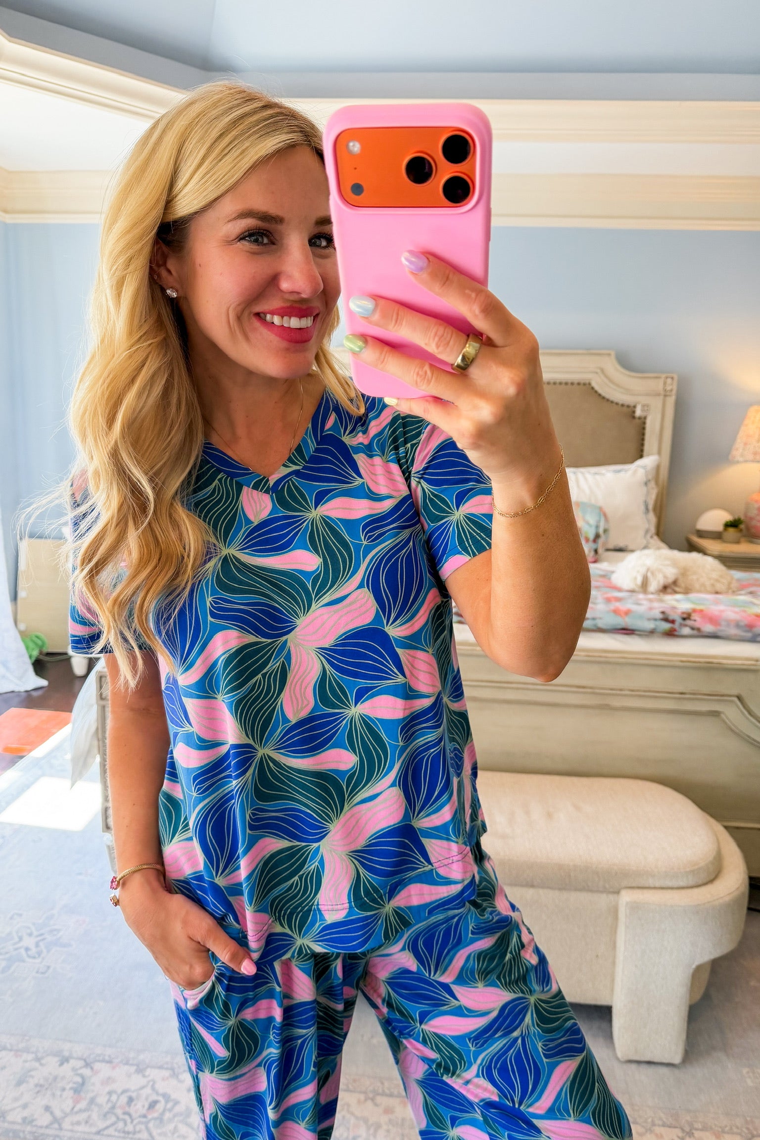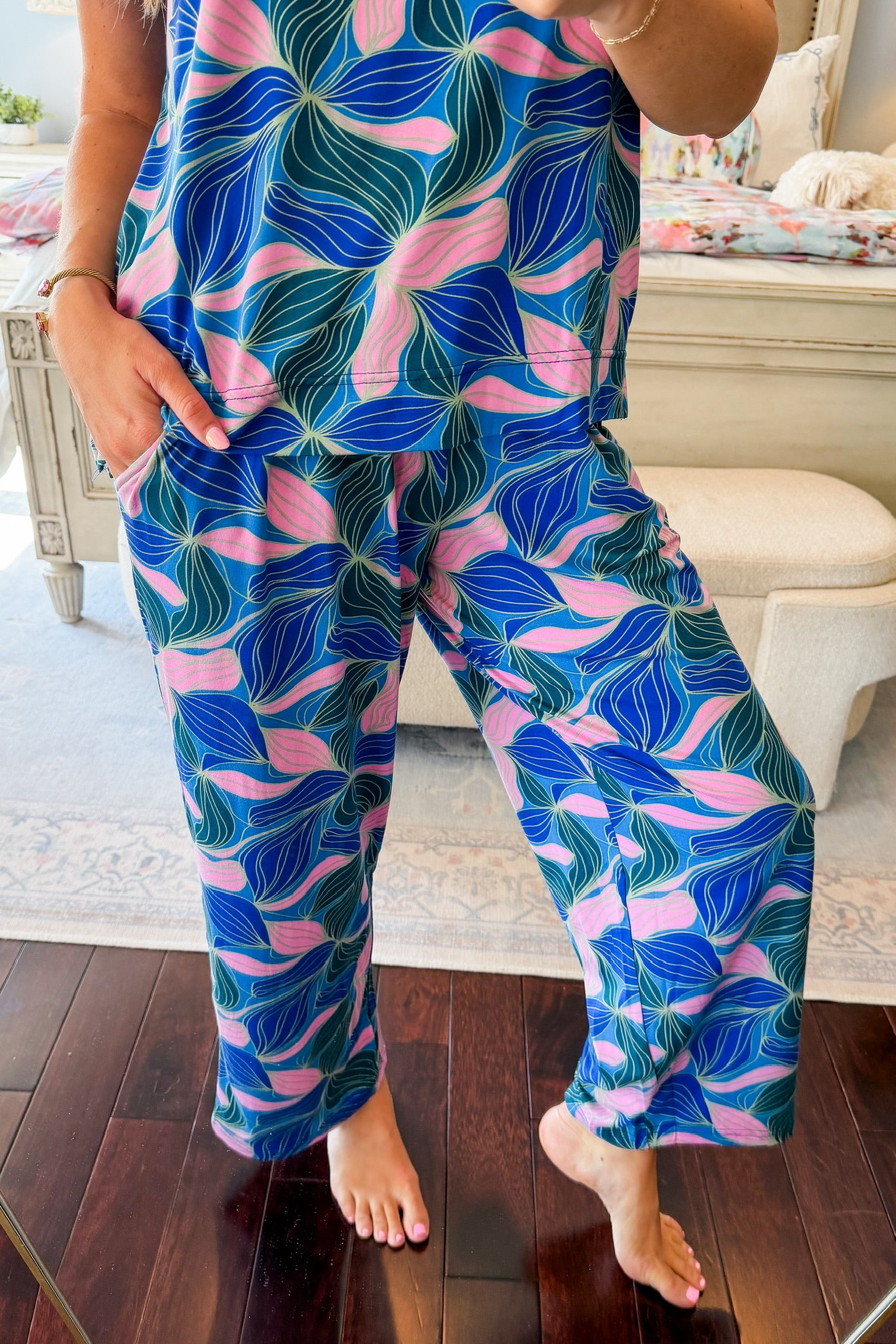 The Alli Pajama Pant Set in Glow Over Blue by Mary Square
