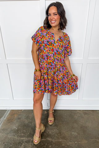 Say hello to instant sunshine — the Periwinkle Bloom Flutter Dress. This airy shift silhouette floats effortlessly with every step, featuring a dreamy mix of emerald, lilac, lemon, and aqua tones that feel like a watercolor garden. The ruffled mock neck and flutter sleeves add a sweet, elevated touch, making this dress perfect for brunch days, spring events, showers, or any moment that calls for easy elegance. Lightweight, flattering, and truly mood-lifting.