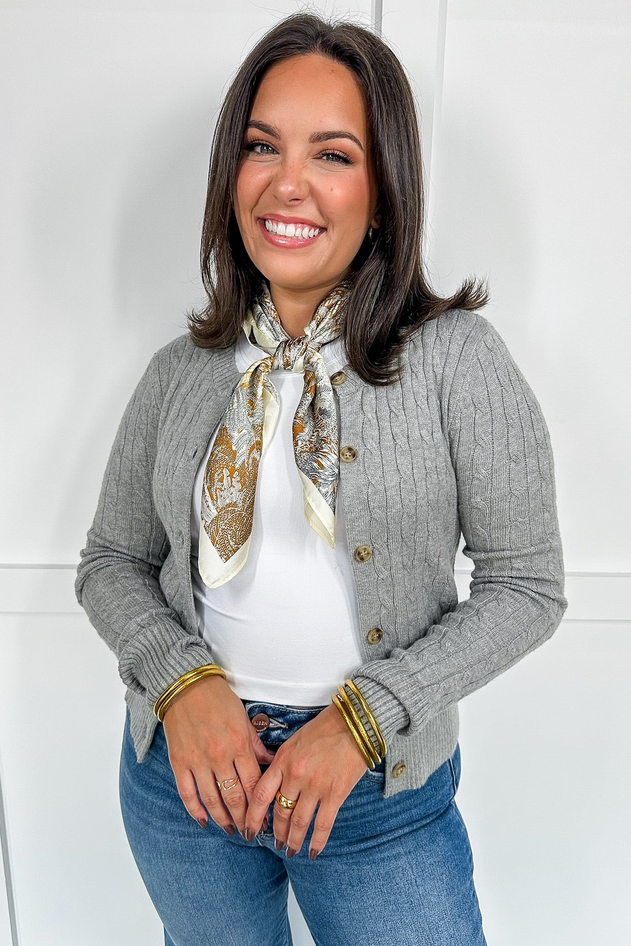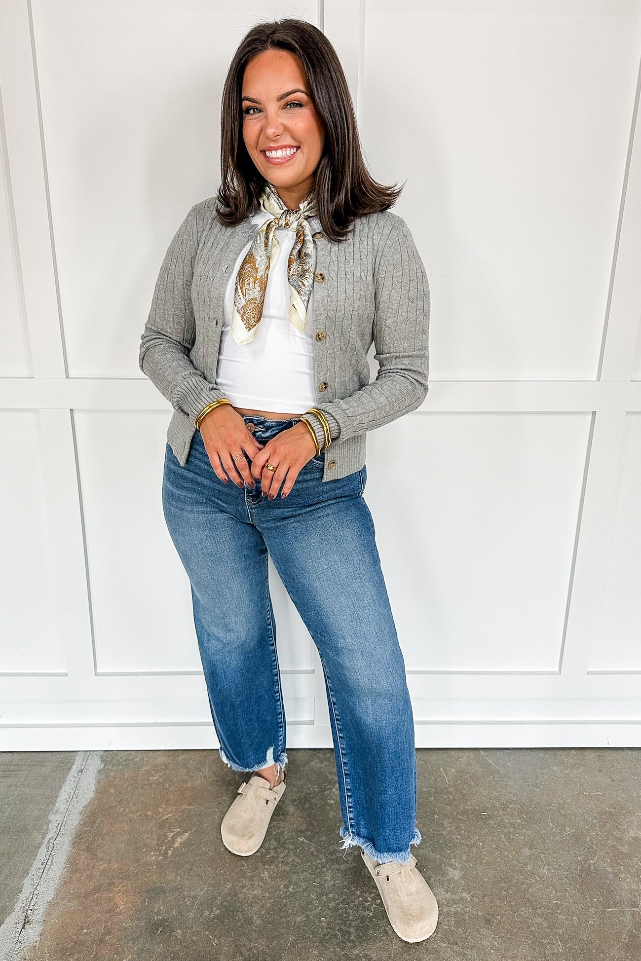 The Claudette Fishermen Button Down Cardigan in Grey is your new cozy companion. With its fitted silhouette and charming wood buttons, you can rock it open for a breezy vibe or button up for a snug, polished look. Long sleeves keep you warm and stylish all day long. Bonus: it’s also available in a delicious chocolate shade for those who like a little variety in their wardrobe!