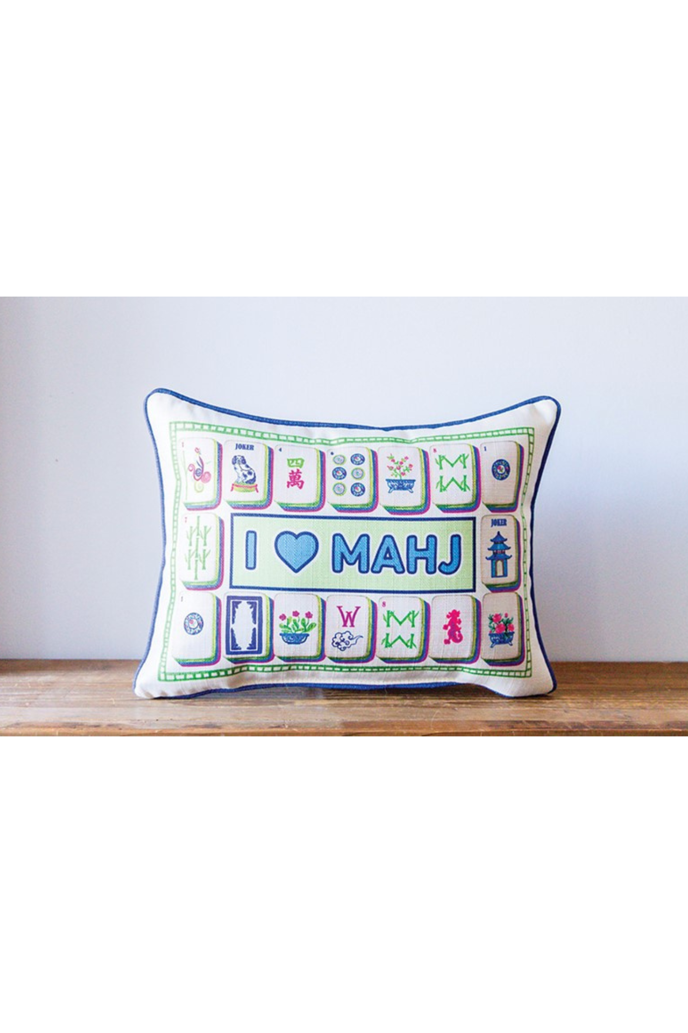 Game night just got an upgrade. The I ♥ Mahj Decorative Pillow is the perfect statement piece for every mahjong lover. Featuring colorful tile illustrations framed in a bold border and a playful “I ♥ MAHJ” center design, this pillow brings personality and charm to any space.