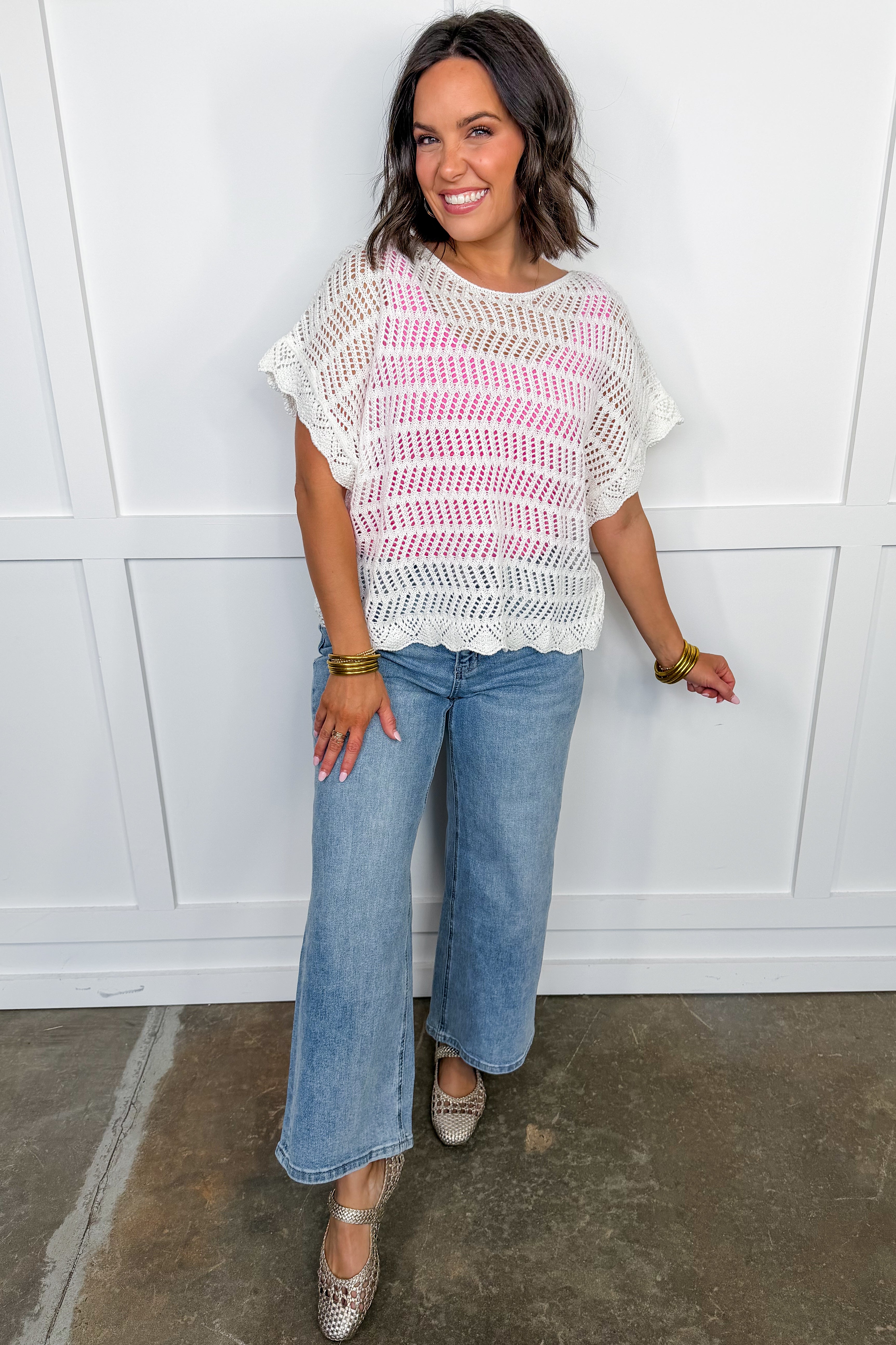 Breezy, feminine, and effortlessly chic, The Light & Lovely Crochet Top is the perfect warm-weather layer. Designed with an airy open-knit crochet pattern and relaxed short sleeves, this top offers lightweight comfort with a soft, romantic feel. Easy to style and endlessly versatile, it’s a go-to piece for casual days, beach outings, and laid-back weekend looks.