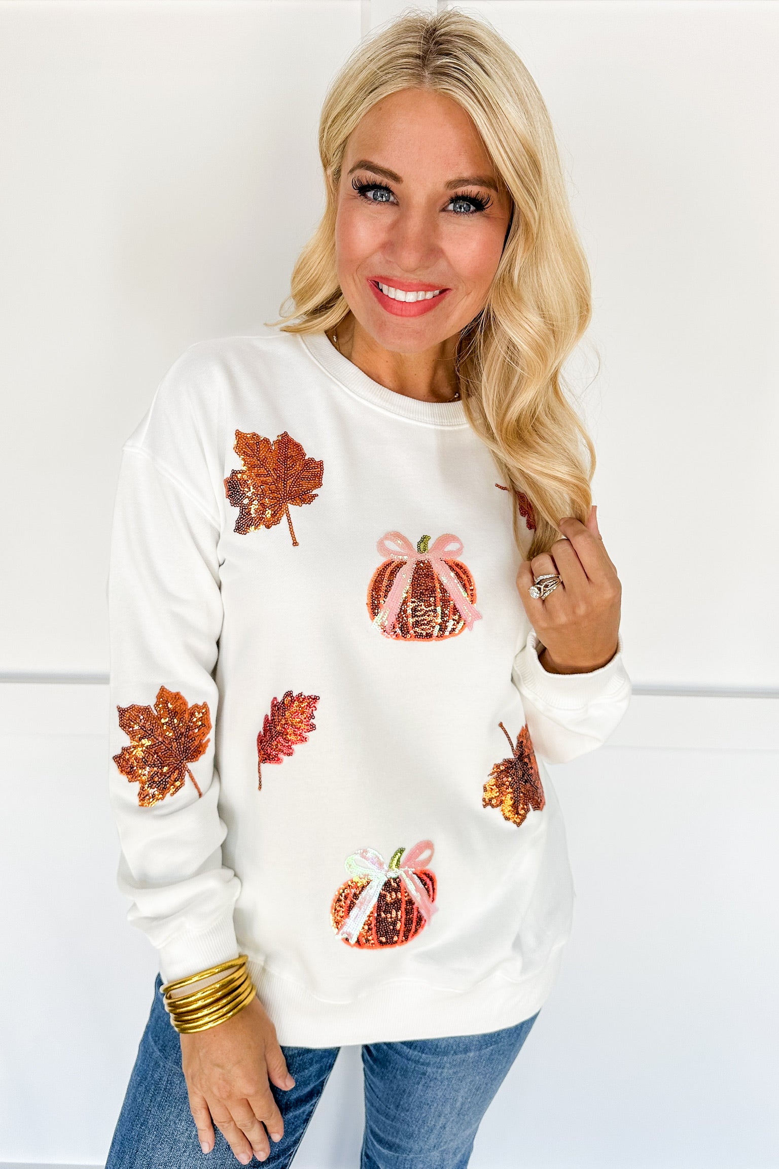 Add a touch of sparkle to your fall wardrobe with this Pumpkin Spice Pullover Top. Featuring shimmering sequin details, long sleeves, and a flattering waist-length cut, this crew neck pullover effortlessly blends cozy comfort with festive flair. Perfect for cozy nights or casual outings where you want to shine just right!