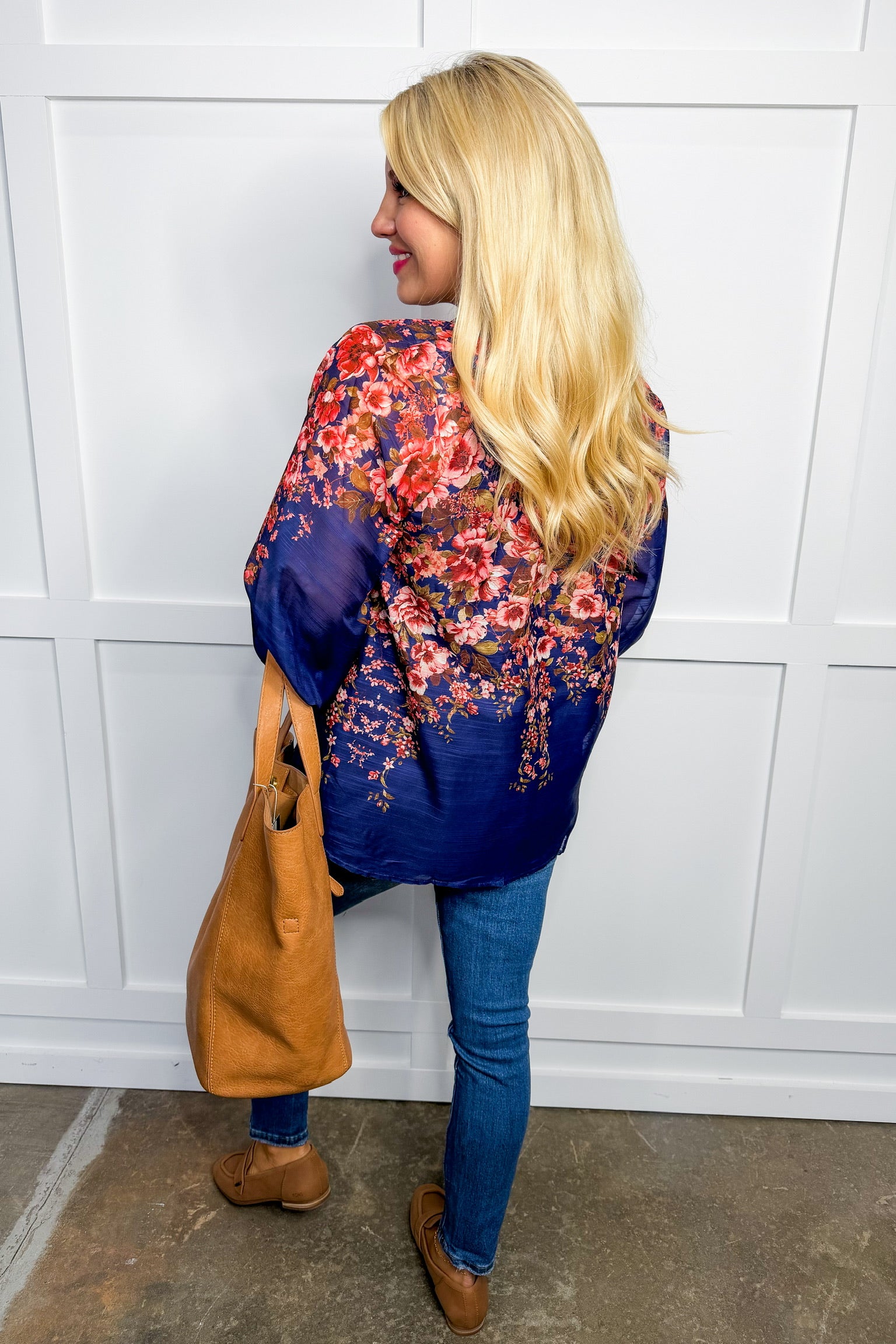Romantic and effortlessly elegant, the Midnight Bloom Top brings a touch of artistry to your wardrobe. Featuring rich navy fabric with stunning coral and rust embroidery, this top blends boho charm with classic sophistication. Flowing sleeves and a relaxed silhouette make it a perfect pairing for denim or dress pants — equally chic for work or weekend wear.