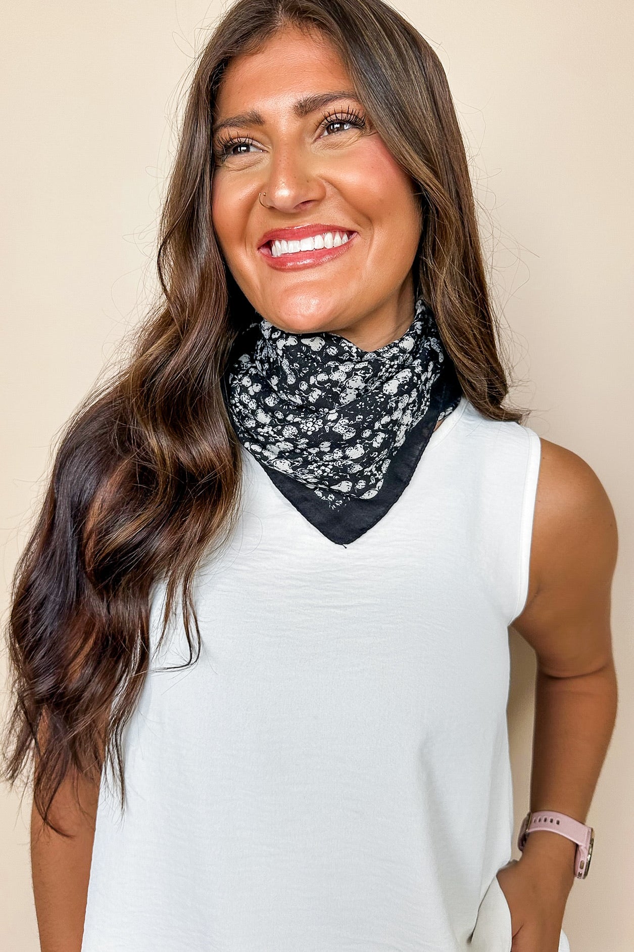 Add a splash of fun to any outfit with this Black & White Fruit Bandana Scarf. Its neutral colors make it easy to mix and match, while the playful fruit pattern brings a fresh twist to your look. Perfect for tying around your neck, wrist, or bag, this versatile accessory adds a cheeky pop of style wherever you go.