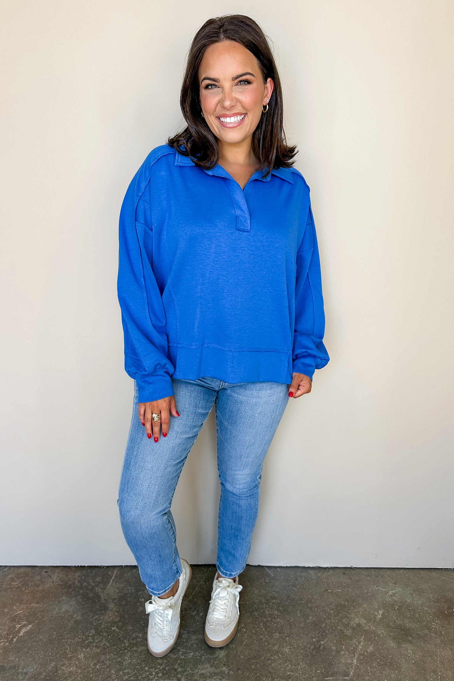 Elevate your wardrobe with this oversized long sleeve top, designed for effortless style and comfort. Featuring a refined V-neck with subtle collar detail, it offers a chic yet relaxed silhouette. Crafted from soft, cozy fabric, this piece is perfect for layering or wearing on its own, making it an ideal go-to for both casual and polished looks.