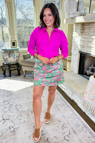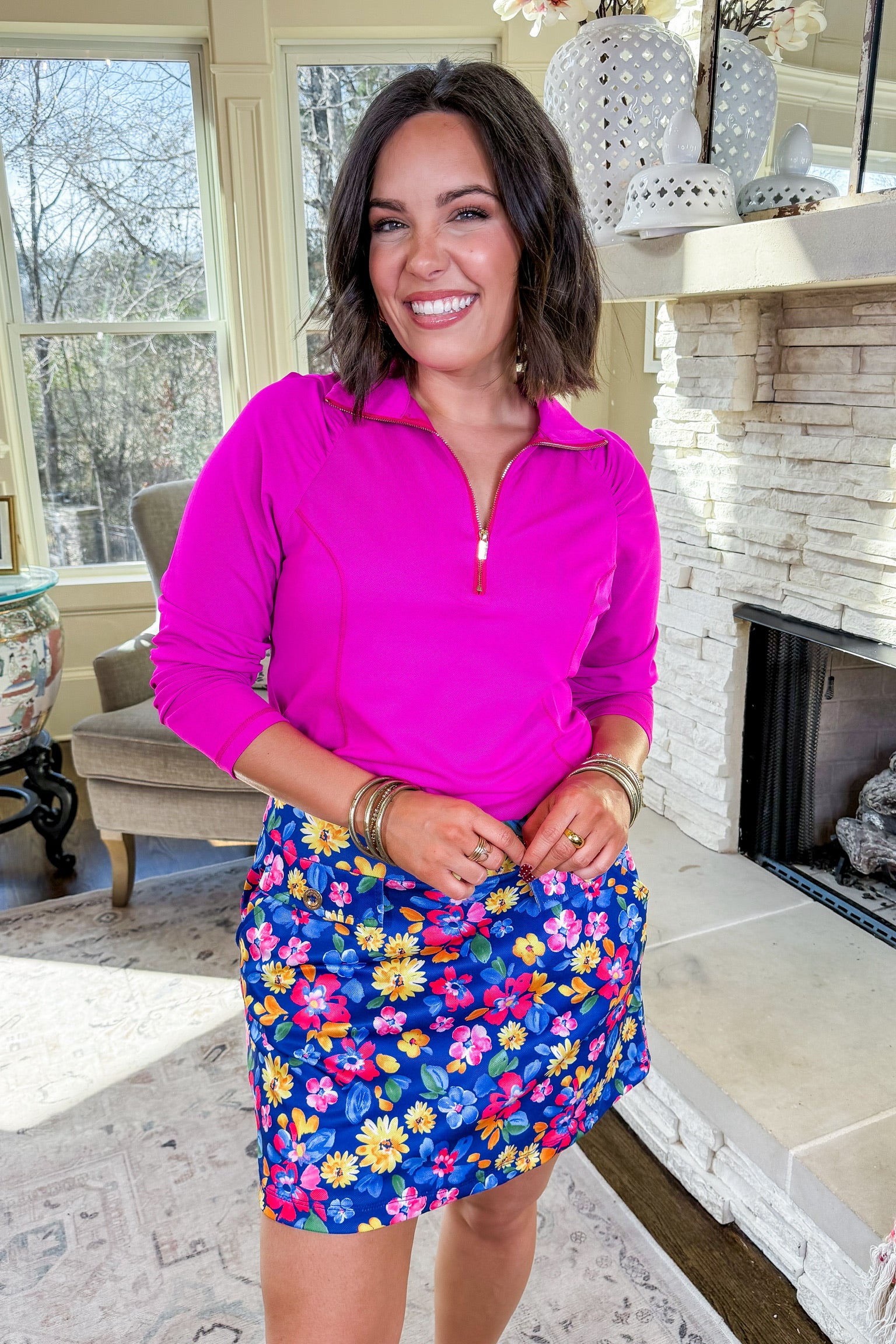 The Tee Time Skort is the perfect mix of playful and practical. Designed with a flattering skort silhouette, this style gives you the look of a skirt with the comfort and confidence of built-in shorts. Finished in a fun floral print, it’s easy to throw on for golf days, pickleball, or casual outings when you want to stay comfortable without sacrificing style.